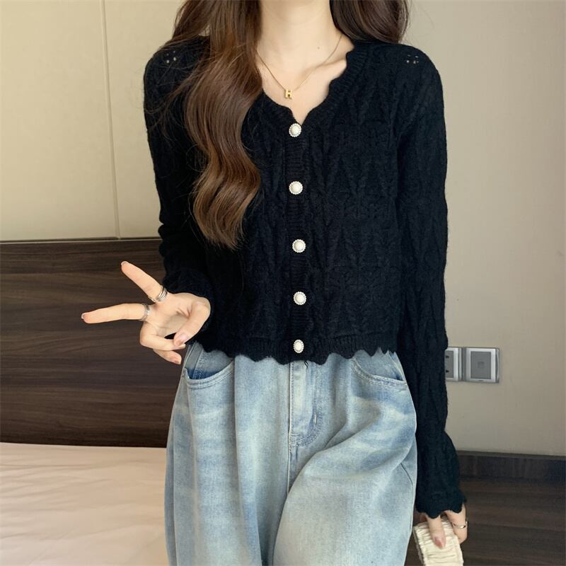 【送料無料】 レディース トップス Vネック ニット 模様編み 防寒 こなれ感 スタイルアップ 体型カバー シンプル カジュアル きれいめ ショート丈 大人かわいい 長袖 カーキ ブラック 20代 30代 40代 通勤 通学 オフィス お出掛け 女子会 お呼ばれ 秋冬