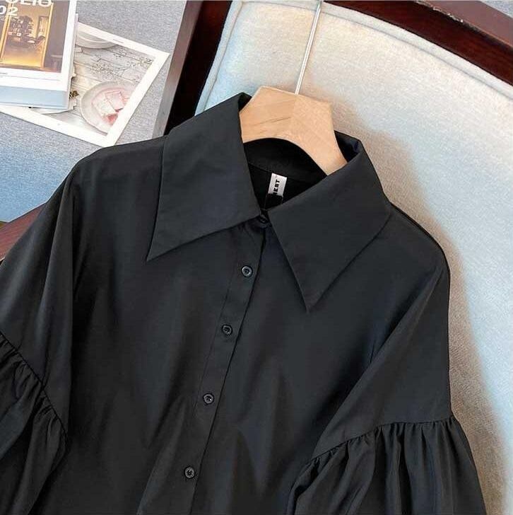 【送料無料】 レディース トップス ブラウスふんわり袖 バルーンスリーブ 体型カバー 二の腕カバー スタイルアップ シンプル カジュアル きれいめ こなれ感 デザインブラウス キュート 大人かわいい こなれ感 長袖 ブラック ホワイト 黒 白 20代 30代 40代 通勤 通学 オフィス お出掛け 女子会 お呼ばれ 春秋冬