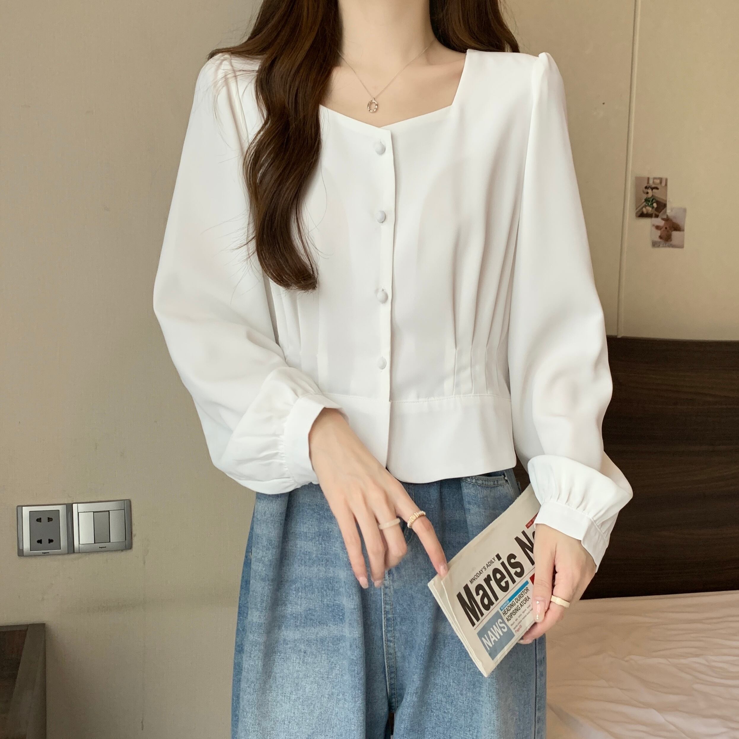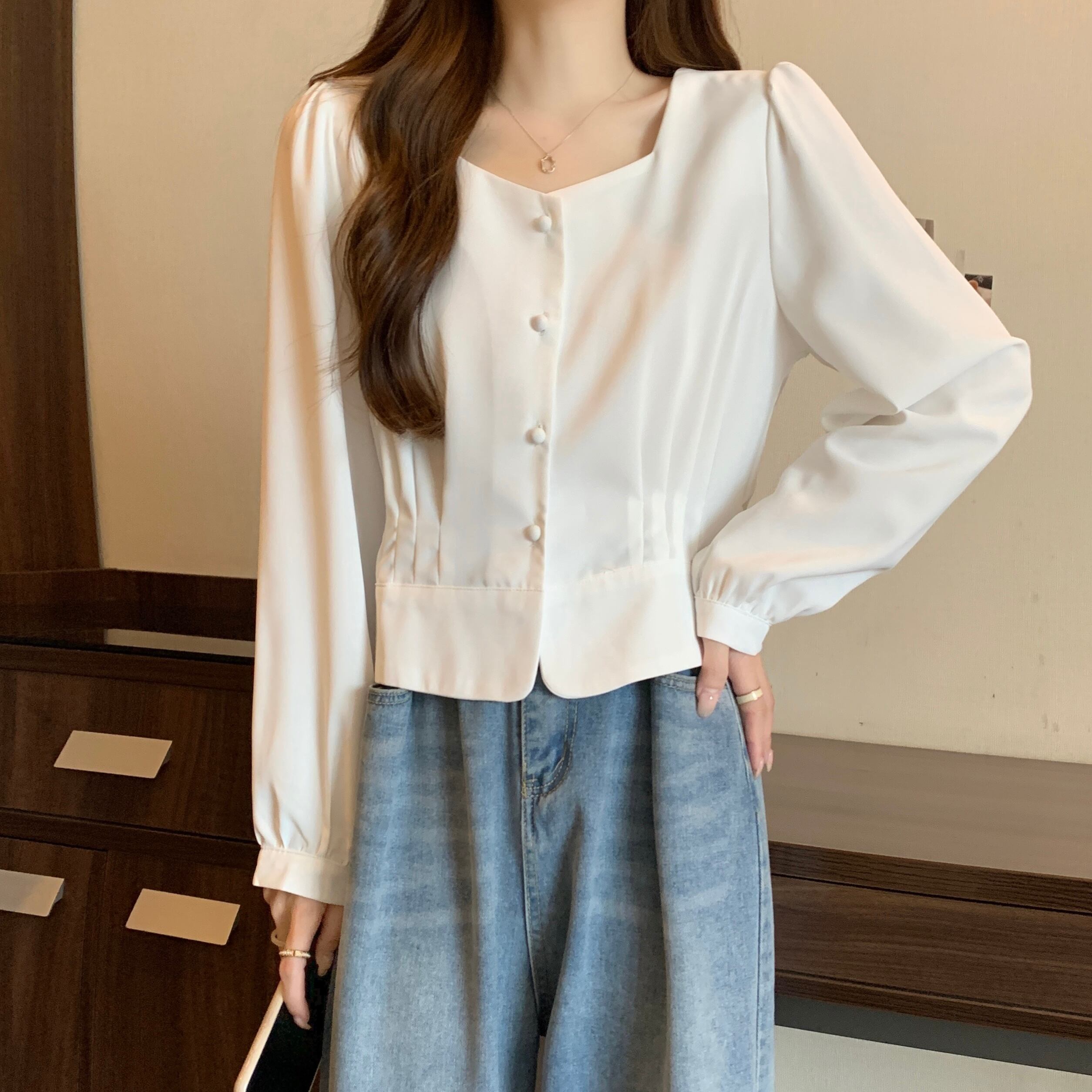 【送料無料】 レディース トップス ブラウス ふんわり袖 ギャザー クルーネック 体型カバー シンプル カジュアル きれいめ 大人可愛い 二の腕カバー スタイルアップ 上品 こなれ感 長袖 ホワイト カーキ ブラック 20代 30代 40代 通勤 通学 オフィス お出掛け 女子会 お呼ばれ 秋冬