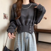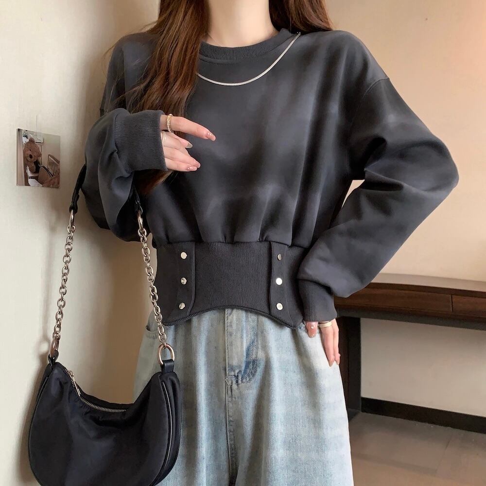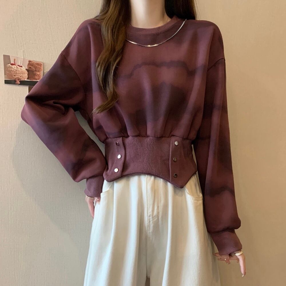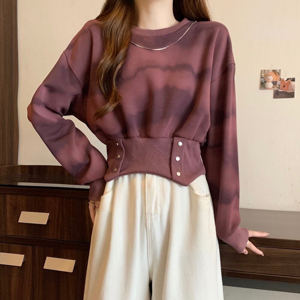 【送料無料】 レディース トップス カットソー クルーネック ウエストシェイプ タイダイ ふんわり袖 シンプル カジュアル スタイルアップ 体型カバー 二の腕カバー こなれ感 大人かわいい 長袖 パープル ホワイト グレー 20代 30代 40代 通勤 通学 オフィス お出掛け 女子会 お呼ばれ 秋冬