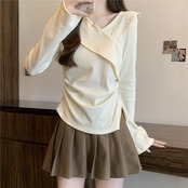 【送料無料】 レディース トップス カットソー アシンメトリー カシュクール風 体型カバー シンプル カジュアル きれいめ 大人かわいい スタイルアップ 二の腕カバー こなれ感 長袖 イエロー ベージュ ブラック 20代 30代 40代 通勤 通学 オフィス お出掛け 女子会 お呼ばれ 秋冬