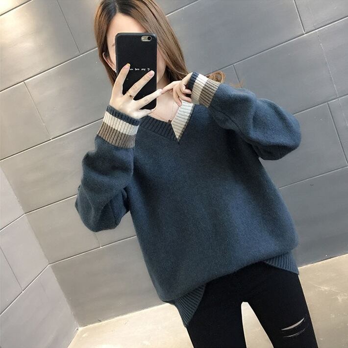 【送料無料】 レディース トップス ニット ロング丈 Vネック マルチカラー ゆったり シンプル カジュアル きれいめ 体型カバー こなれ感 スタイルアップ 重ね着 長袖 ブルー ベージュ カーキ ブラック 20代 30代 40代 通勤 通学 オフィス お出掛け 女子会 お呼ばれ 秋冬