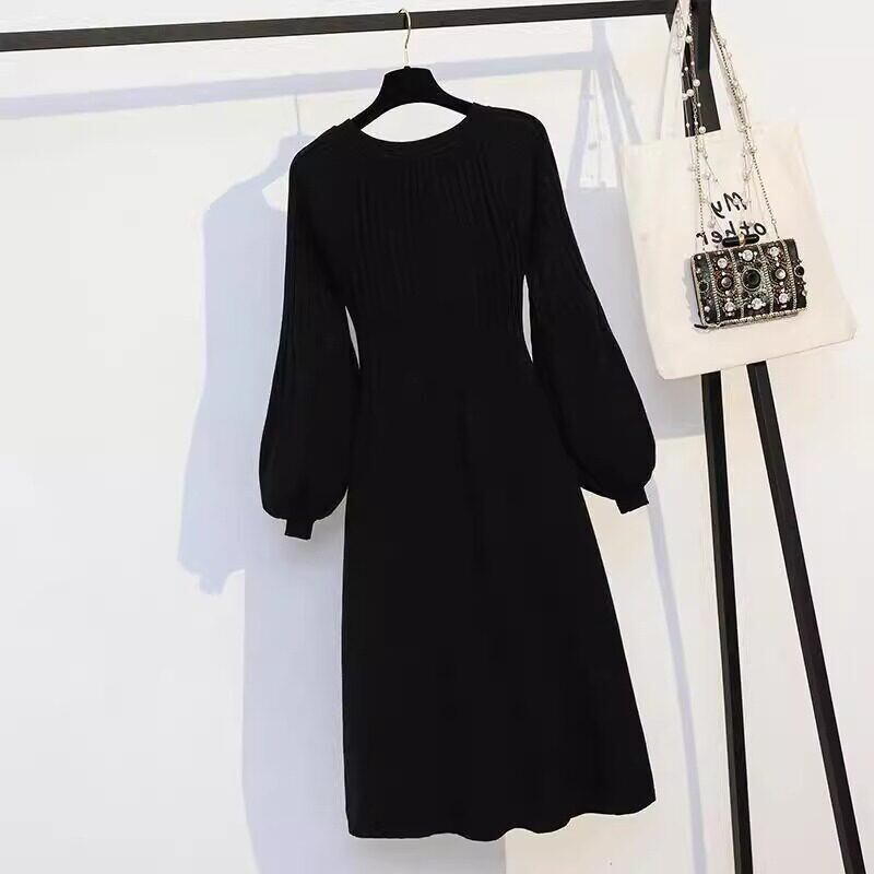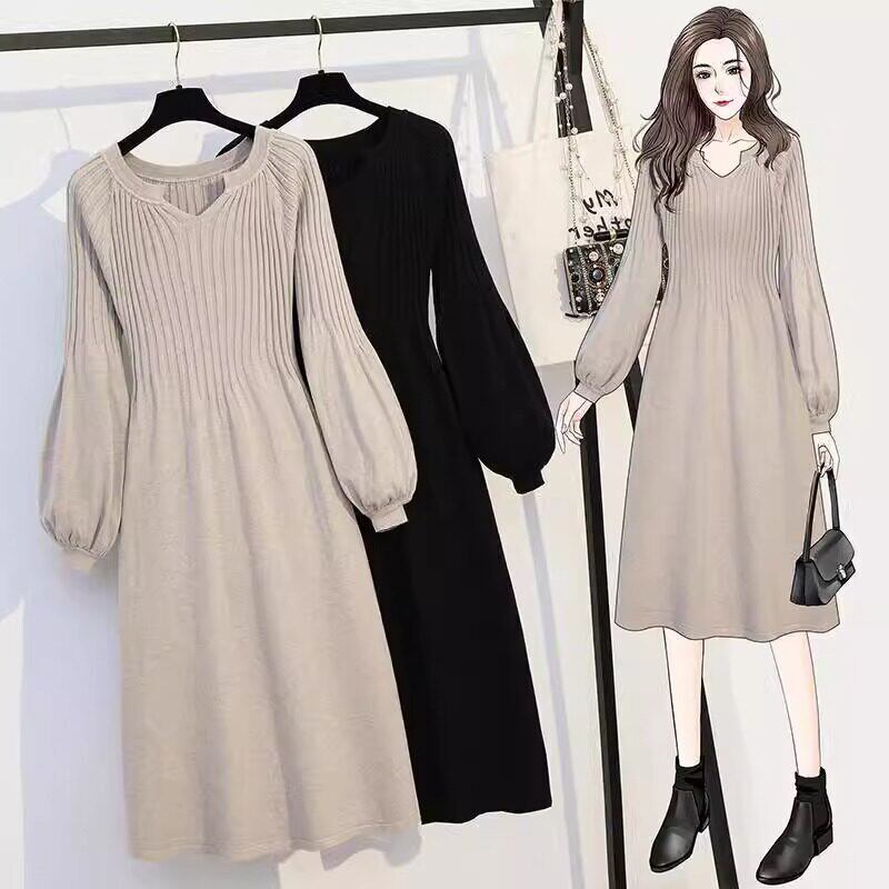 【送料無料】 レディース ワンピース キーネックニットふんわり袖 ミドル丈 Aライン ニット リブ スタイルアップ こなれ感 シンプル カジュアル きれいめ 大人かわいい キュート 抜け感 長袖 ベージュ ブラック 20代 30代 40代 通勤 通学 オフィス お出掛け 女子会 お呼ばれ 秋冬