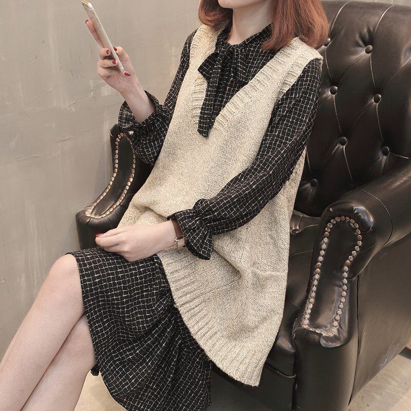 【送料無料】 レディース ワンピース セットアップ ショート丈 ニット ベスト 着回し シンプル カジュアル きれいめ 大人かわいい スタイルアップ 体型カバー こなれ感 リボン 長袖 カーキ モスグリーン グレー ブラウン ブラック 20代 30代 40代 通勤 通学 オフィス お出掛け 女子会 お呼ばれ 秋冬