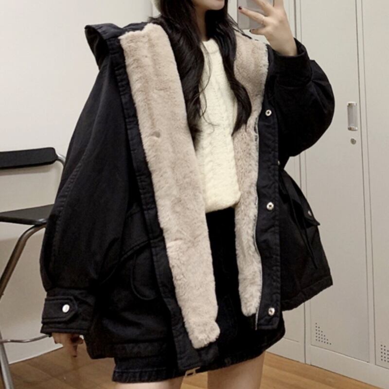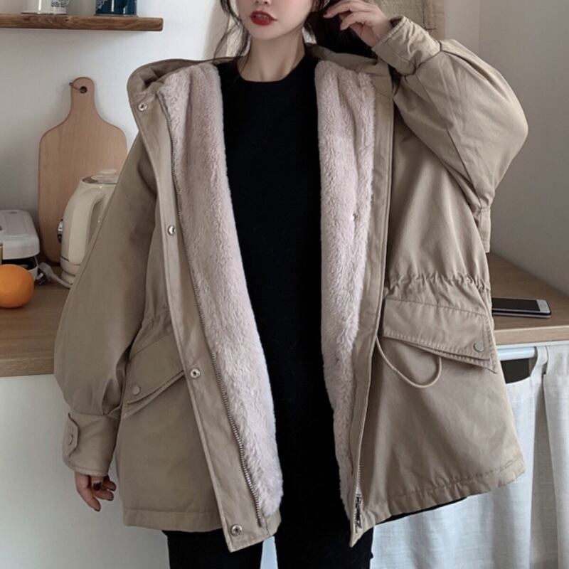 【送料無料】 レディース アウター 羽織り 防寒 ゆったり 体型カバー シンプル カジュアル アウトドア ファー フード付き こなれ感 二の腕カバー ハーフ丈 長袖 カーキ ブラック 20代 30代 40代 通勤 通学 オフィス お出掛け 女子会 お呼ばれ 秋冬