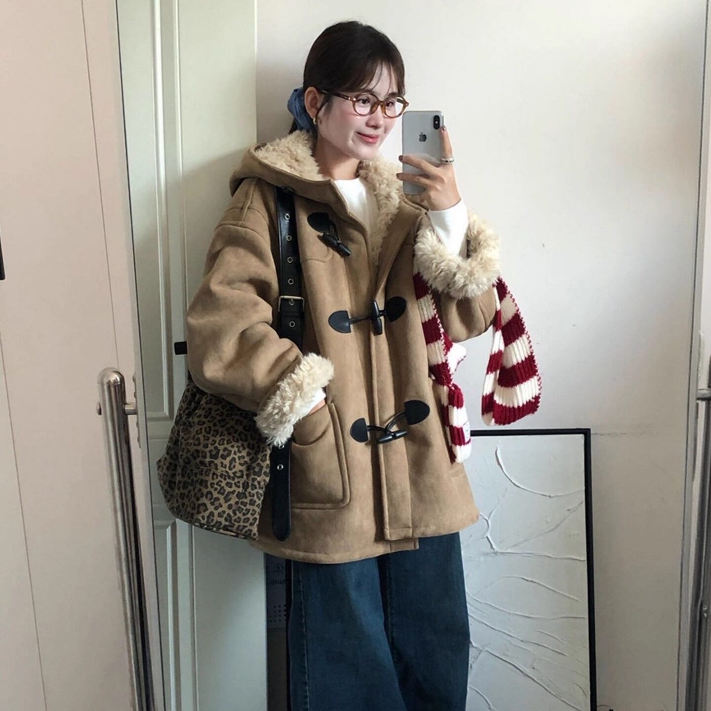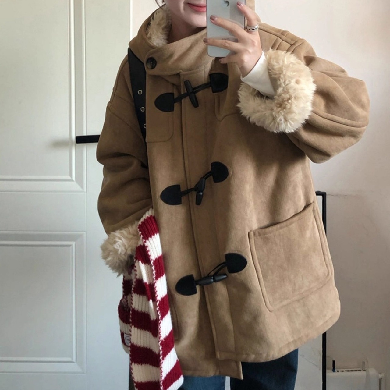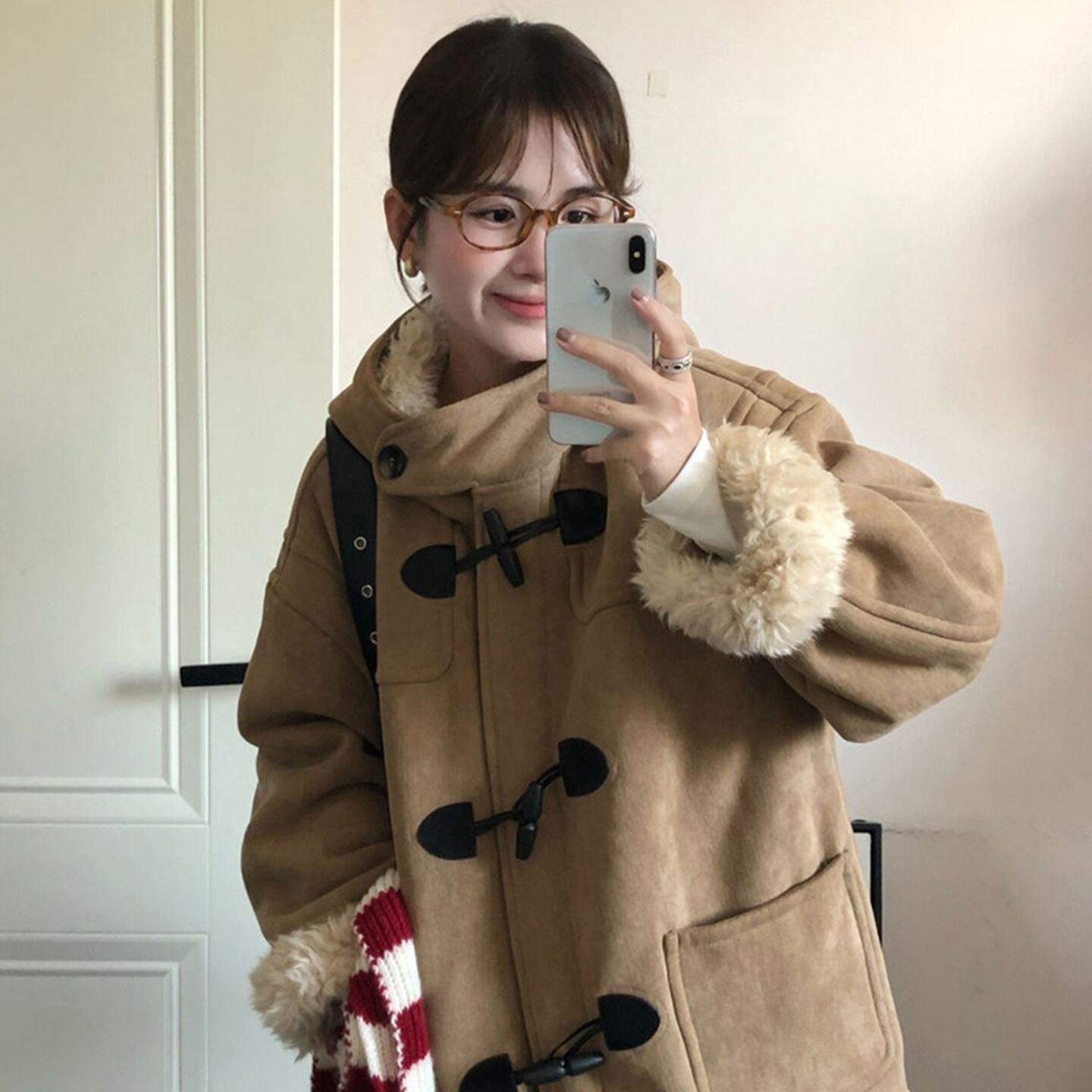 【送料無料】 レディース アウター 羽織り 防寒 コート ハーフ丈 ミディアム丈 ダッフルコート 裏起毛 キュート 体型カバー 二の腕カバー スタイルアップ シンプル カジュアル 大人かわいい 長袖 カーキ 20代 30代 40代 通勤 通学 オフィス お出掛け 女子会 お呼ばれ 秋冬