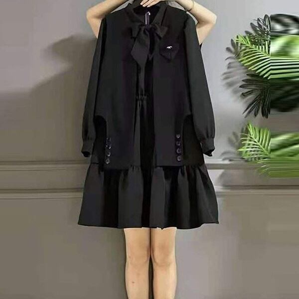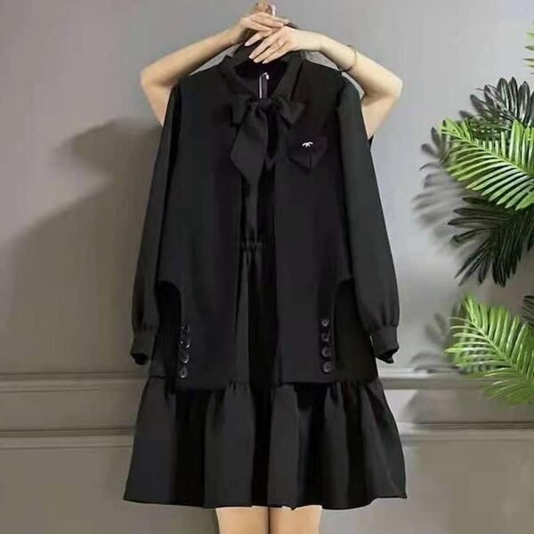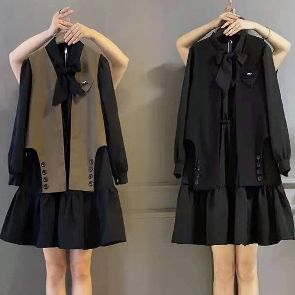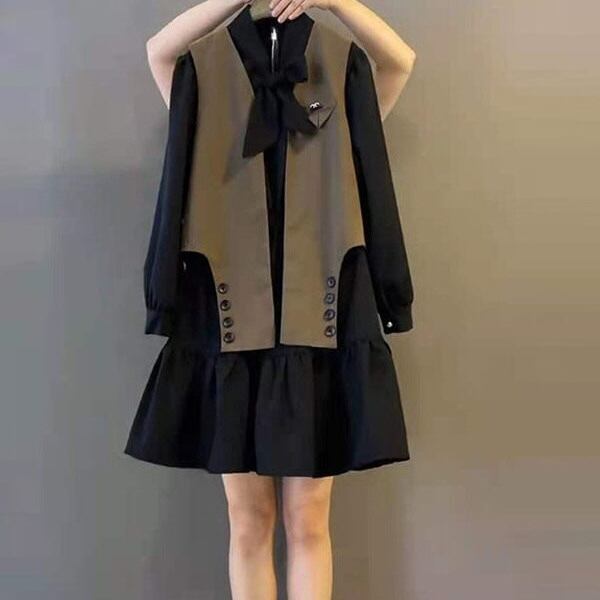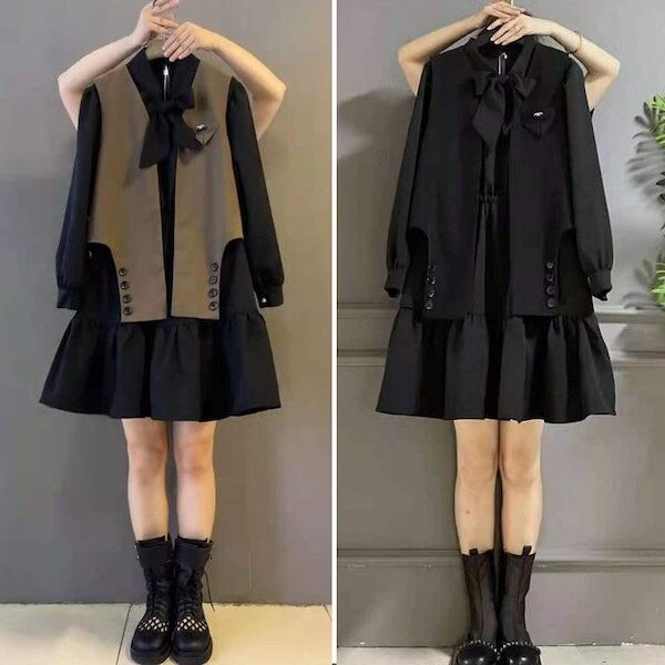 【送料無料】 レディース ワンピース ショート丈 ミニ丈 ドッキング カラー切り替え 重ね着風 フェイクレイヤード シンプル カジュアル きれいめ 大人かわいい こなれ感 長袖 ブラウン ブラック 20代 30代 40代 通勤 通学 オフィス お出掛け 女子会 お呼ばれ 秋冬