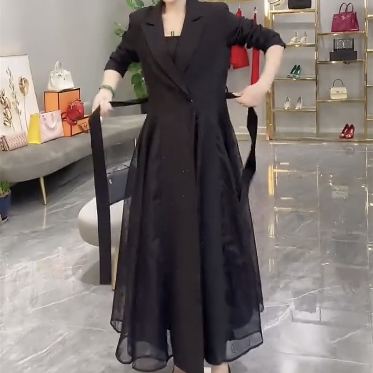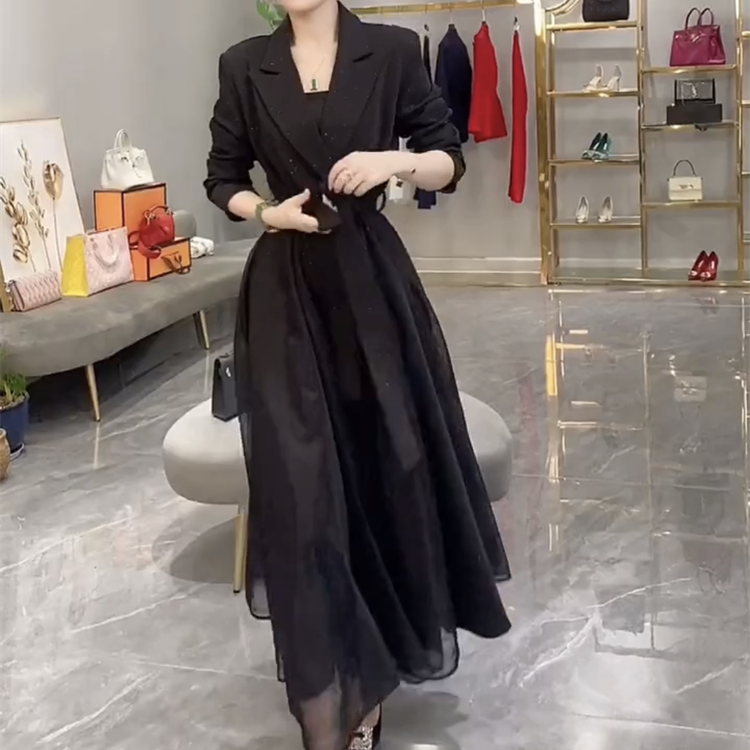 【送料無料】 レディース ドレス パーティードレス ワンピース Aライン カラーブロック Vネック ロング丈 マキシ丈 シンプル きれいめ 大人かわいい レトロ こなれ感 体型カバー 二の腕カバー スタイルアップ 長袖 ブラック 黒 結婚式 2次会 お呼ばれ パーティー お食事会 ディナー ランチ お出かけ 秋冬