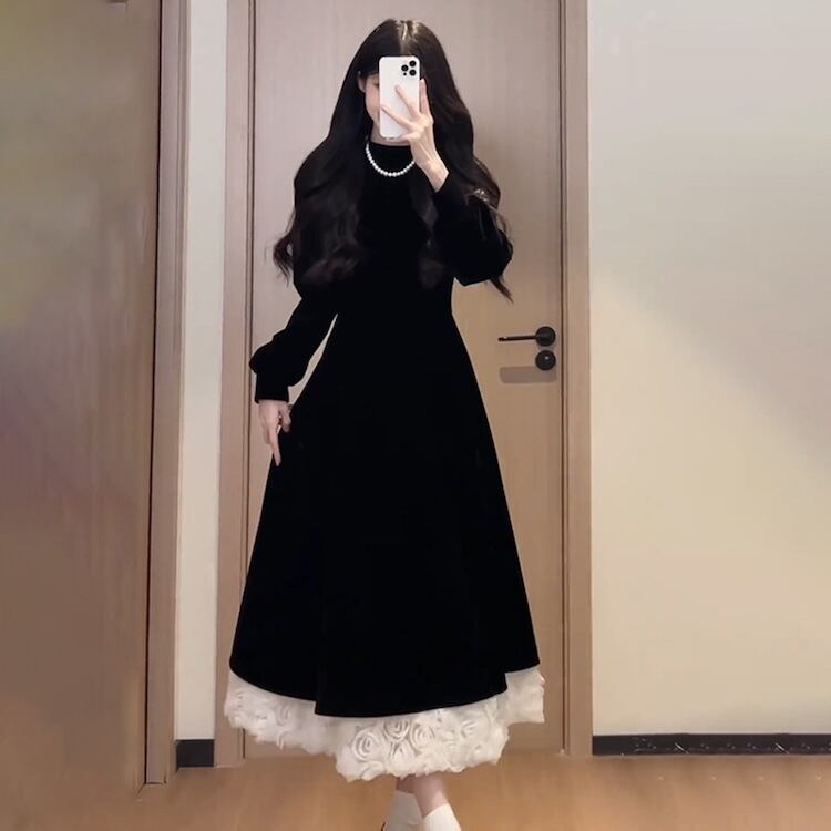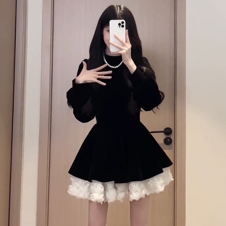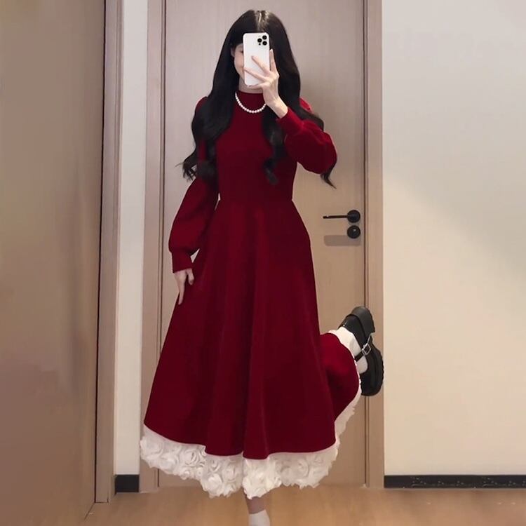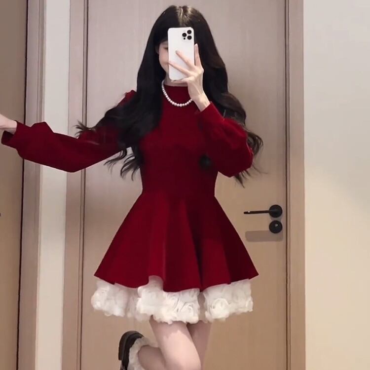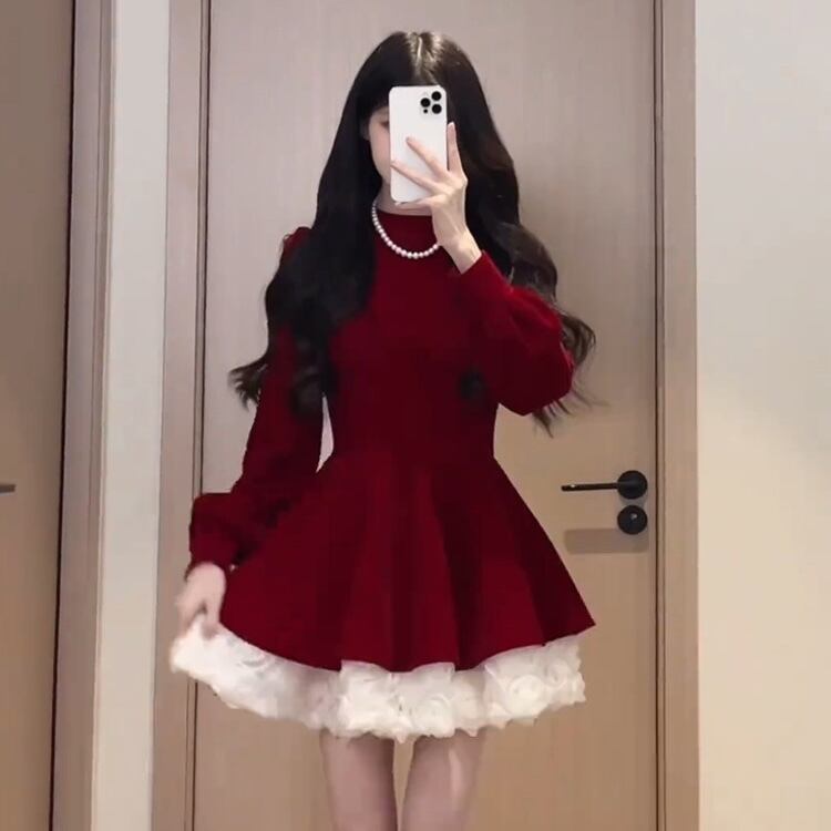 【送料無料】 レディース ワンピース Aライン クルーネックミニ丈 ショート丈 ミドル丈 ミディアム丈 ミモレ丈 ロング丈 マキシ丈 シンプル きれいめ 大人かわいい キュート レトロ こなれ感 体型カバー 二の腕カバー スタイルアップ カラー切り替え ドッキング レース スウィート 長袖 レッド ブラック 20代 30代 40代 通勤 通学 オフィス お出掛け 女子会 お呼ばれ 秋冬