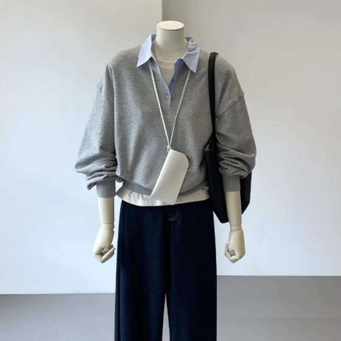送料無料】 レディース トップス カットソー Vネック キーネック 素材組み合わせ ドッキング 体型カバー 二の腕カバー スタイルアップ カラー切り替え カラーブロック フェイクレイヤード 重ね着風 シンプル カジュアル きれいめ 大人かわいい 長袖 グレー ネイビー 20代 30代 40代 通勤 通学 オフィス お出掛け 女子会 お呼ばれ 秋冬