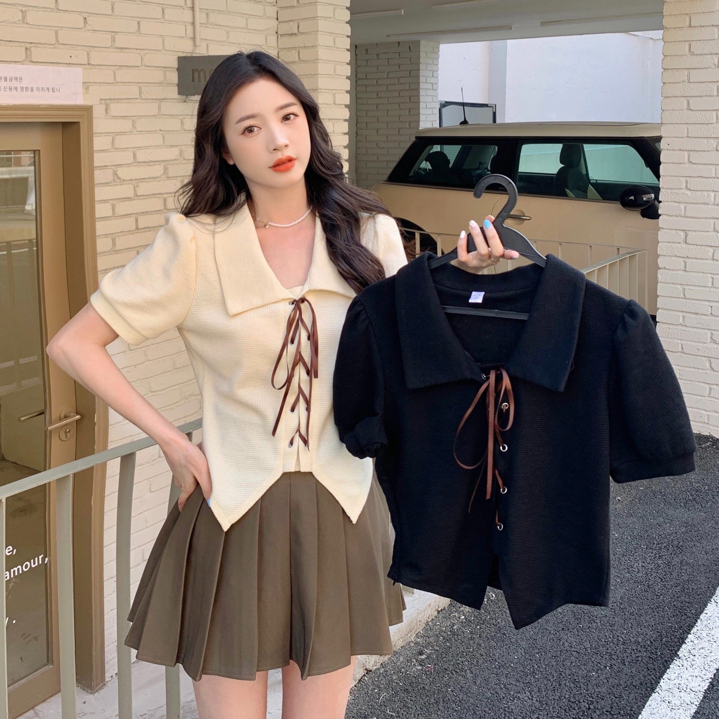 送料無料】 レディース トップス カットソー ショート丈 Vネック スクエアネック リボン シンプル カジュアル きれいめ 大人かわいい ふんわり袖 体型カバー 二の腕カバー スタイルアップ半袖 アイボリー 黒 20代 30代 40代 通勤 通学 オフィス お出掛け 女子会 お呼ばれ 春夏