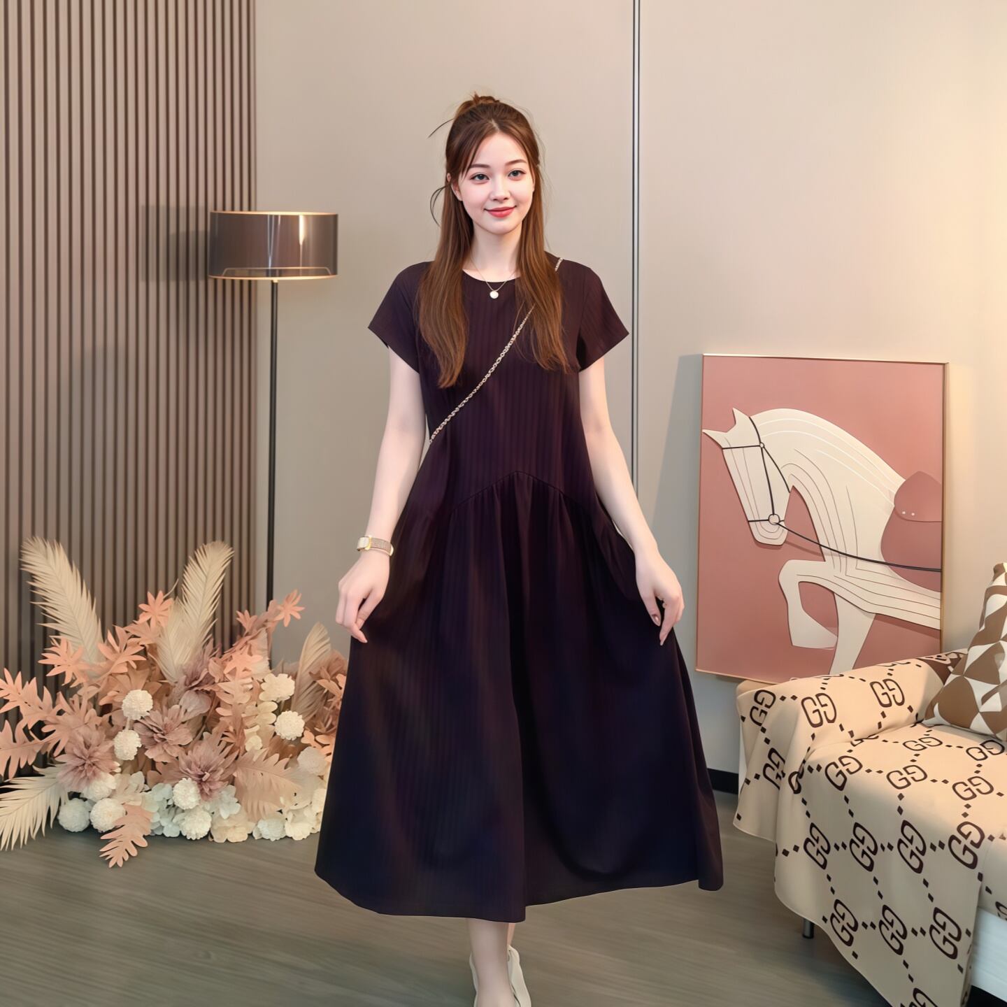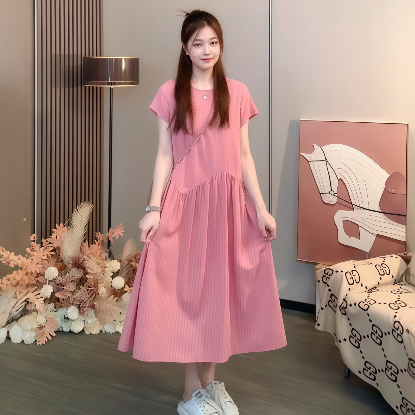 Aラインのロング丈ワンピース