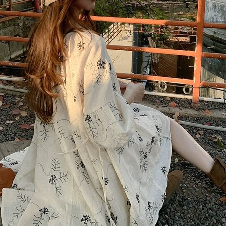 【送料無料】 レディース ワンピース Aライン クルーネック ミニ丈 ショート丈 ふんわり袖 ナチュラル フレア プリント フラワー ボタニカル シンプル きれいめ 大人かわいい キュート レトロ こなれ感 体型カバー 二の腕カバー スタイルアップ 半端袖 5分袖 アイボリー 20代 30代 40代 通勤 通学 オフィス お出掛け 女子会 お呼ばれ 春夏