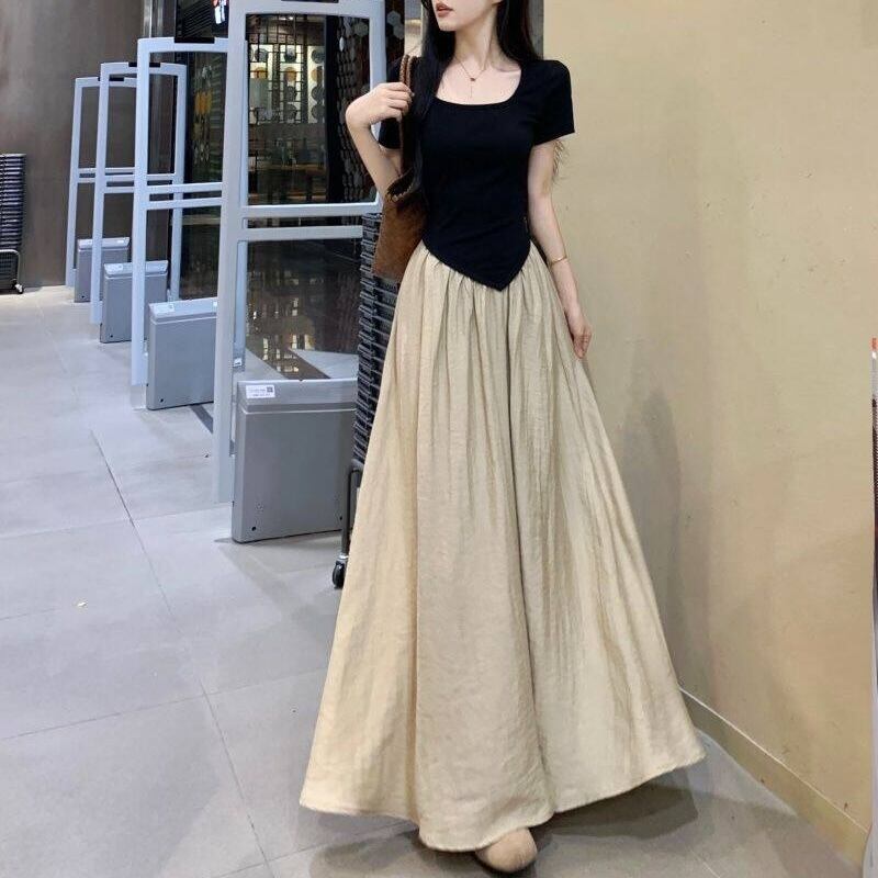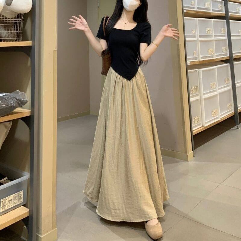 【送料無料】 レディース ワンピース Aライン カラー切り替え カラーブロック ドッキング 素材組み合わせ スクエアネック ロング丈 マキシ丈 シンプル きれいめ 大人かわいい キュート レトロ こなれ感 体型カバー 二の腕カバー スタイルアップ 半袖 ブラック 20代 30代 40代 通勤 通学 オフィス お出掛け 女子会 お呼ばれ 春夏
