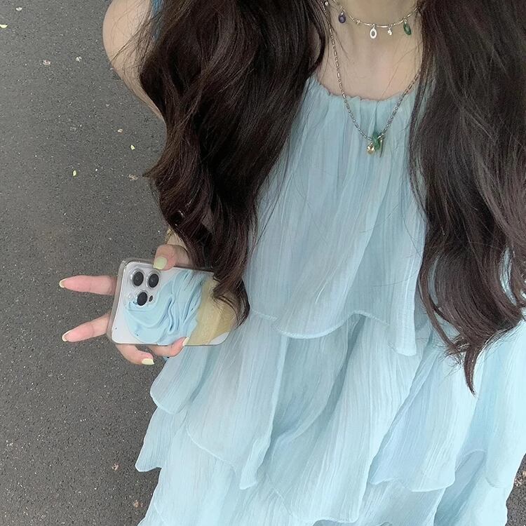 【送料無料】 レディース ワンピース Aライン クルーネック キャミワンピース ミモレ丈 ロング丈 マキシ丈 シンプル きれいめ 大人かわいい キュート レトロ こなれ感 体型カバー 二の腕カバー スタイルアップ ノースリーブ ブルー 20代 30代 40代 通勤 お出掛け 女子会 お呼ばれ 春夏
