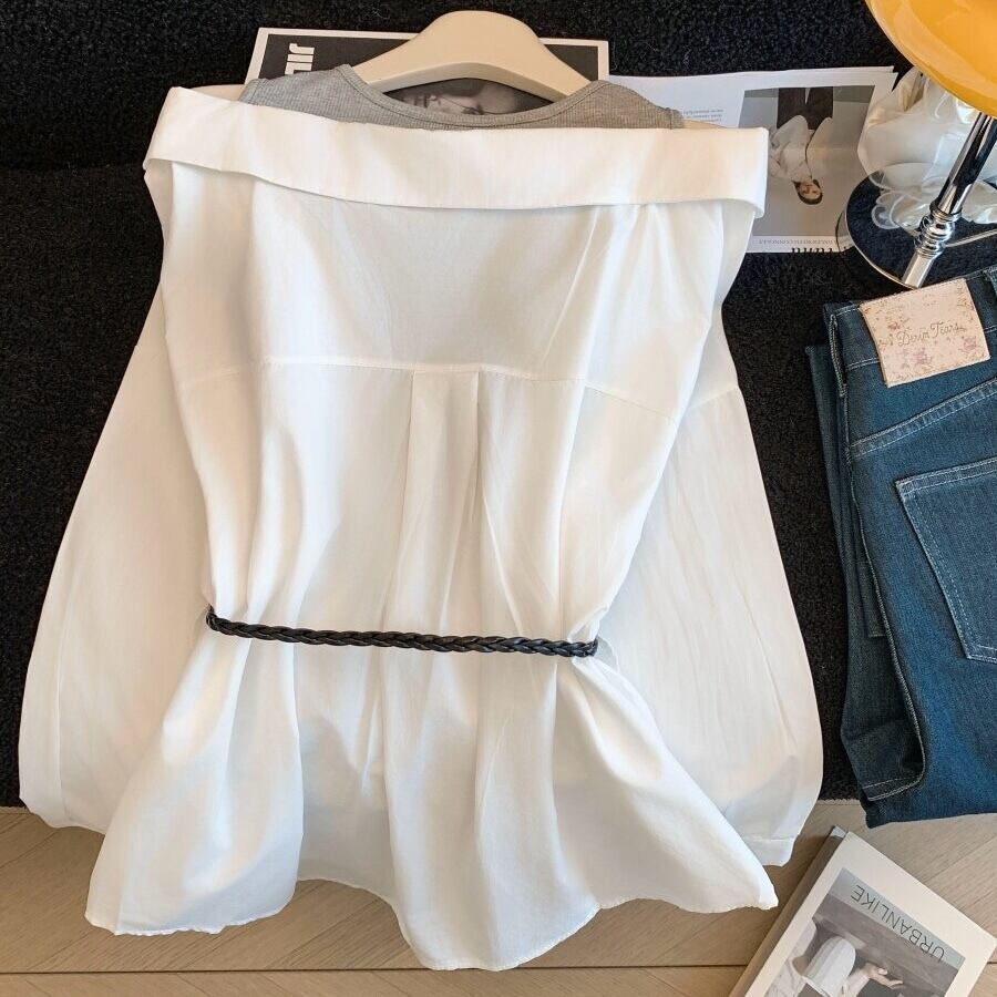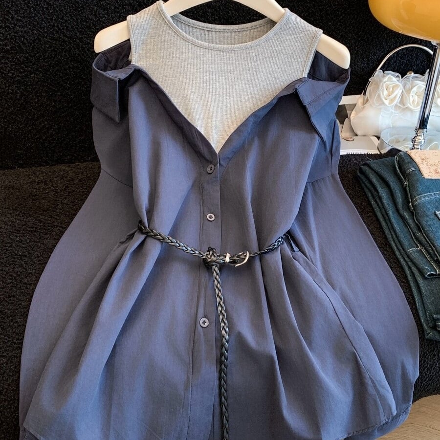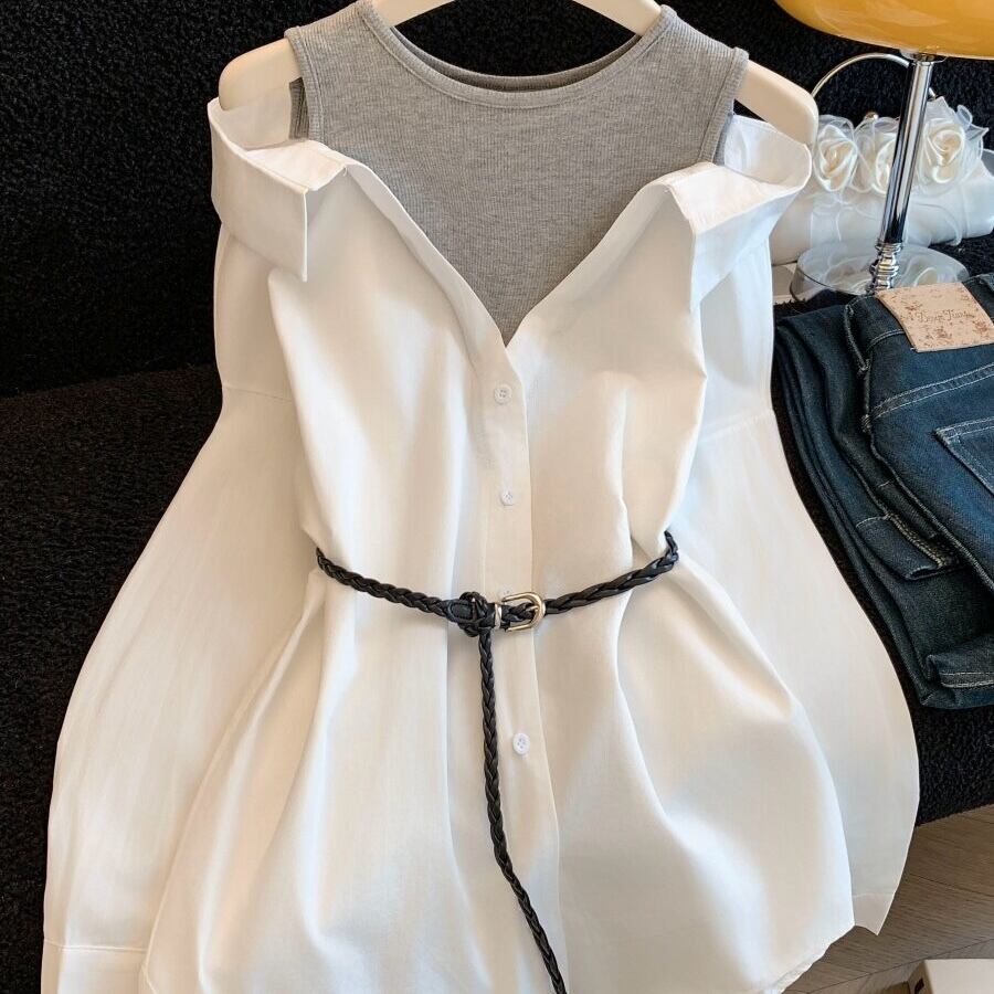 シンプルなフェイキレイヤードのカジュアルシャツ