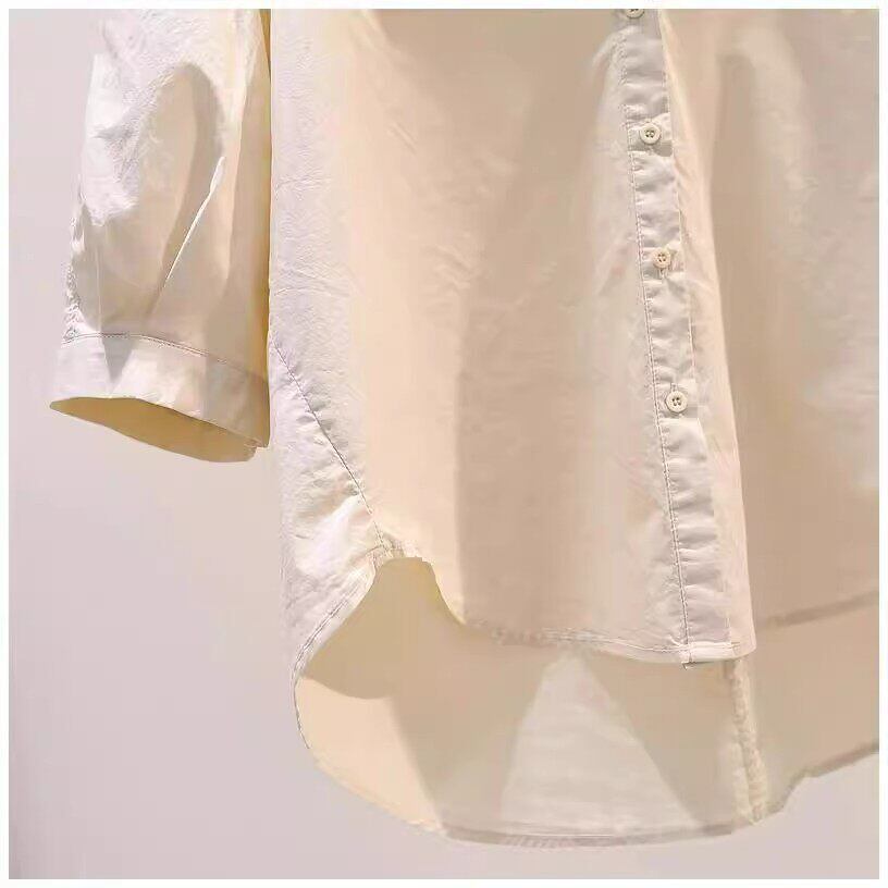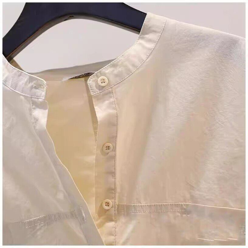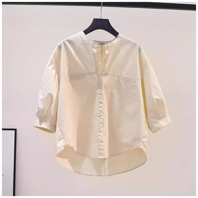 【送料無料】 レディース トップス ブラウス クルーネック ノーカラー ふんわり袖 シンプル カジュアル きれいめ 大人かわいい 体型カバー 二の腕カバー スタイルアップ こなれ感 キュート ナチュラル レトロ 半袖 半端袖 5分袖 アイボリー 20代 30代 40代 通勤 通学 オフィス お出掛け 女子会 お呼ばれ 春夏