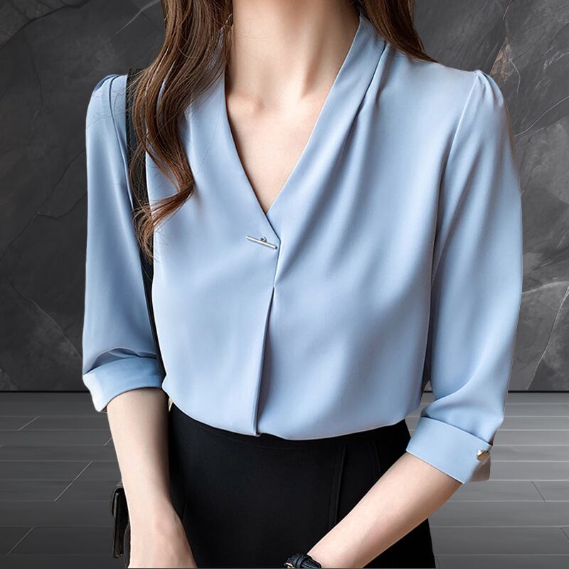 シンプルな7分袖ブラウス