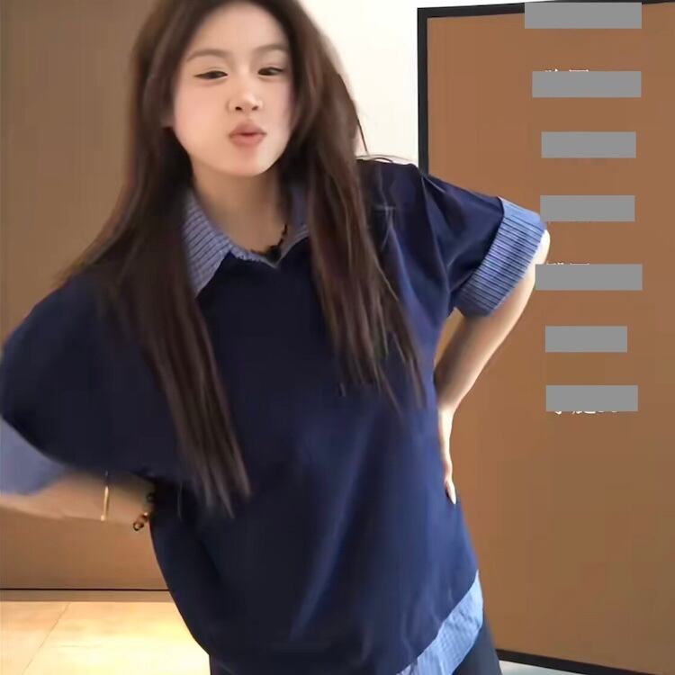 【送料無料】 レディース トップス カットソー クルーネック フェイクレイヤード 重ね着風 カラー切り替え カラーブロック ドッキング 素材組み合わせ シンプル カジュアル きれいめ 大人かわいい 体型カバー 二の腕カバー スタイルアップ 半袖 ネイビー 20代 30代 40代 通勤 通学 オフィス お出掛け 女子会 お呼ばれ 春夏