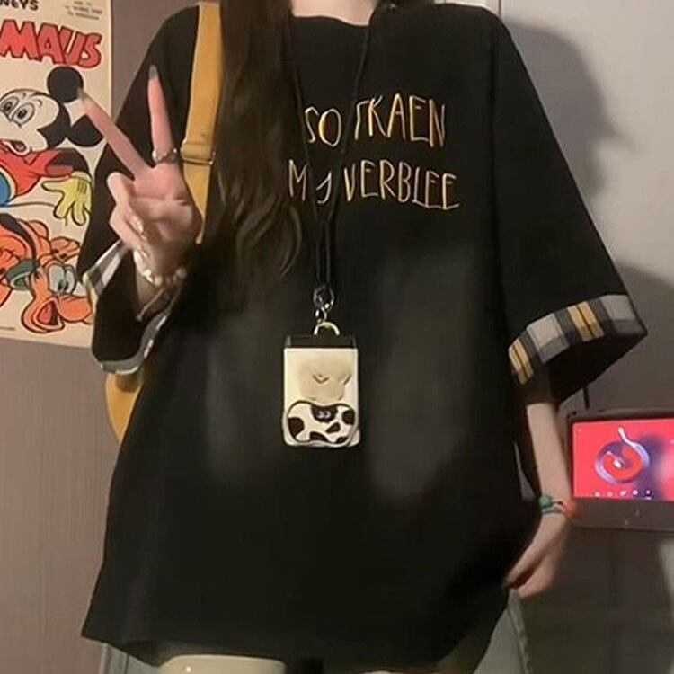 【送料無料】 レディース トップス カットソー クルーネック ゆったり カラー切り替え カラーブロック エンブロイダリー こなれ感 シンプル カジュアル きれいめ 大人かわいい 体型カバー 二の腕カバー スタイルアップ リラックス ロング丈 抜け感 半袖 半端袖 5分袖 ブルー ブラック 20代 30代 40代 通勤 通学 オフィス お出掛け 女子会 お呼ばれ 春夏