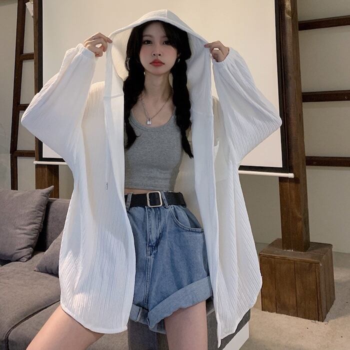 【送料無料】 レディース アウター 羽織り ジャケット クルーネック ゆったり こなれ感 UV対策 紫外線対策 アウトドア シンプル カジュアル きれいめ 大人かわいい フルジップ パーカー 体型カバー 二の腕カバー スタイルアップ こなれ感 抜け感 キュート モノトーン 長袖 ホワイト グリーン 20代 30代 40代 通勤 通学 オフィス お出掛け 女子会 お呼ばれ 春夏