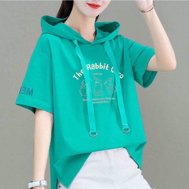 【送料無料】 レディース トップス カットソー クルーネック フード パーカ ゆったり プリント キュート シンプル カジュアル きれいめ 大人かわいい こなれ感 体型カバー 二の腕カバー スタイルアップ 半袖 ホワイト ピンク レッド オレンジ グリーン 20代 30代 40代 通勤 通学 お出掛け 女子会 お呼ばれ 春夏