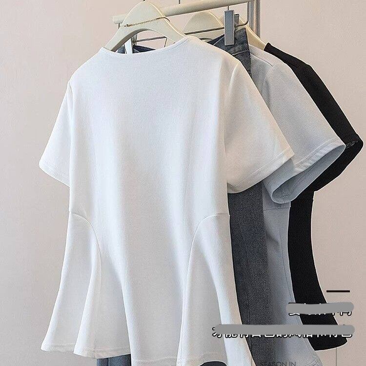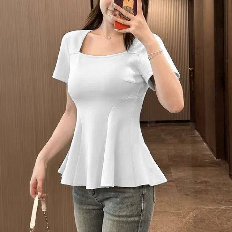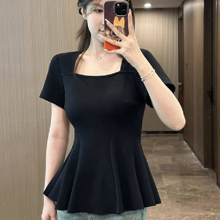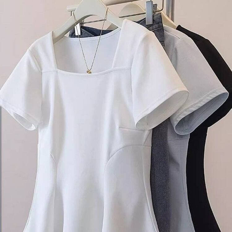 【送料無料】 レディース トップス カットソー スクエアネック ウエストシェイプ ペプラム シンプル カジュアル きれいめ 大人かわいい 体型カバー 二の腕カバー スタイルアップ こなれ感 半袖 ホワイト グレー ブラック 20代 30代 40代 通勤 通学 オフィス お出掛け 女子会 お呼ばれ 春夏