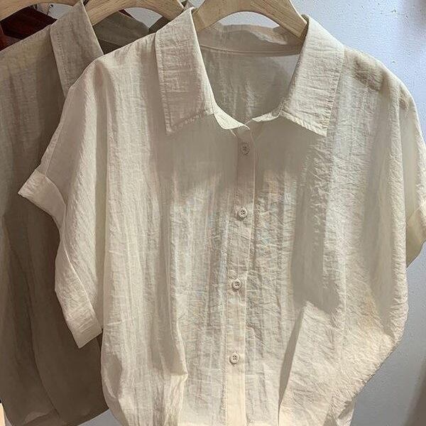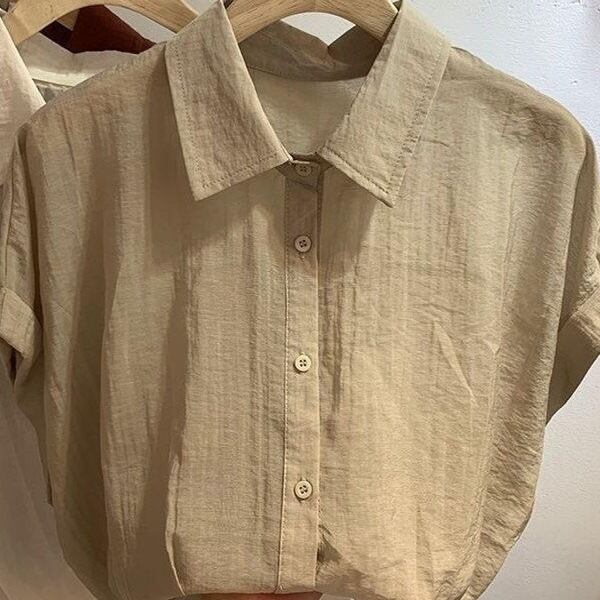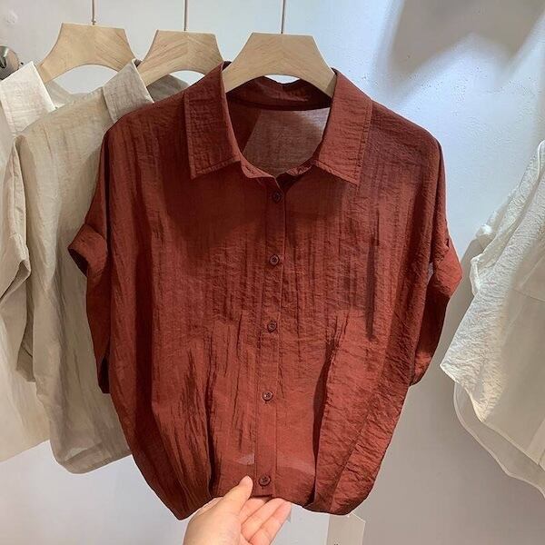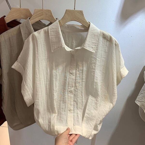 【送料無料】 レディース トップス ブラウス クルーネック クロップド ウエストシェイプ シンプル カジュアル きれいめ 大人かわいい 体型カバー 二の腕カバー スタイルアップ こなれ感 半袖 ベージュ カーキ レッド 20代 30代 40代 通勤 通学 オフィス お出掛け 女子会 お呼ばれ 春夏