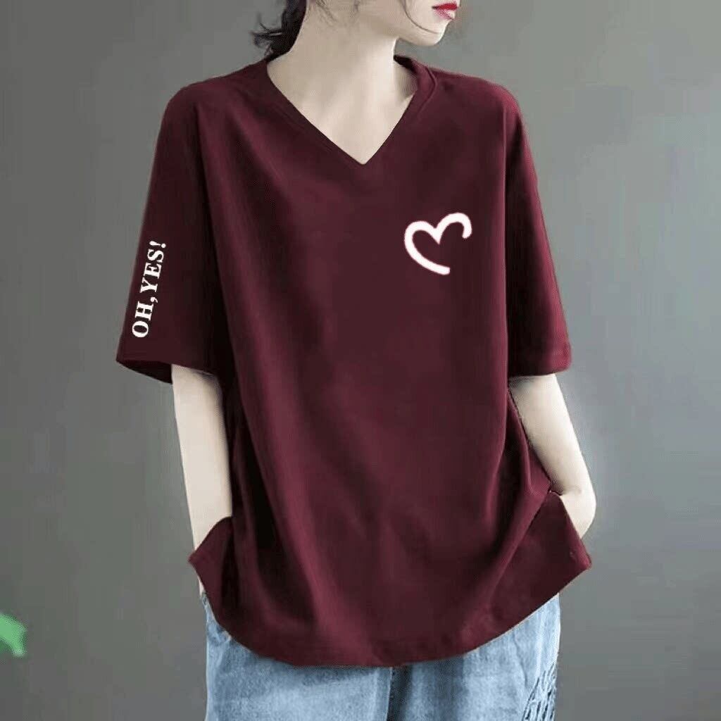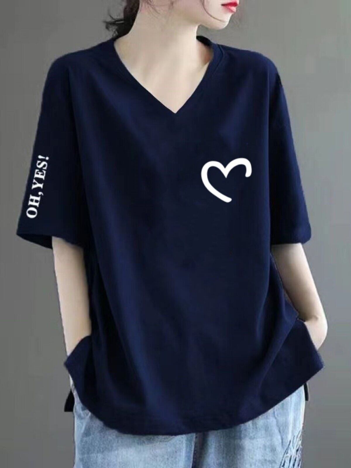 【送料無料】 レディース トップス カットソー Vネック プリント シンプル カジュアル きれいめ 大人かわいい ゆったり 体型カバー 二の腕カバー スタイルアップ 半袖 ネイビー レッド 20代 30代 40代 通勤 通学 オフィス お出掛け 女子会 お呼ばれ 春夏