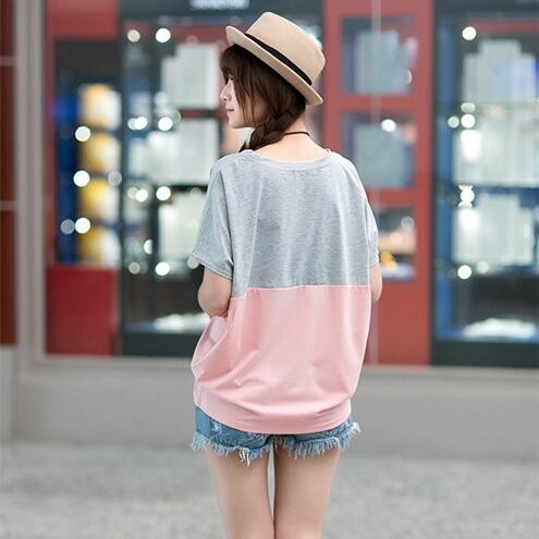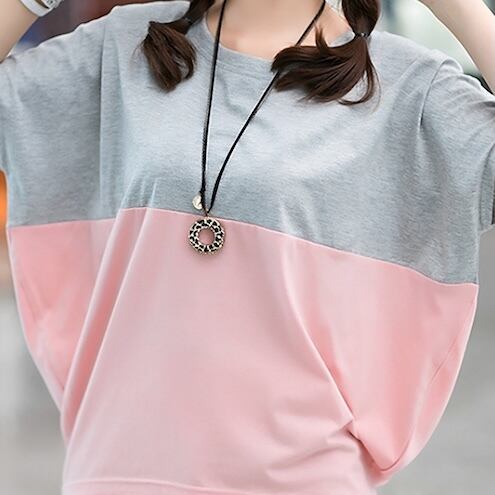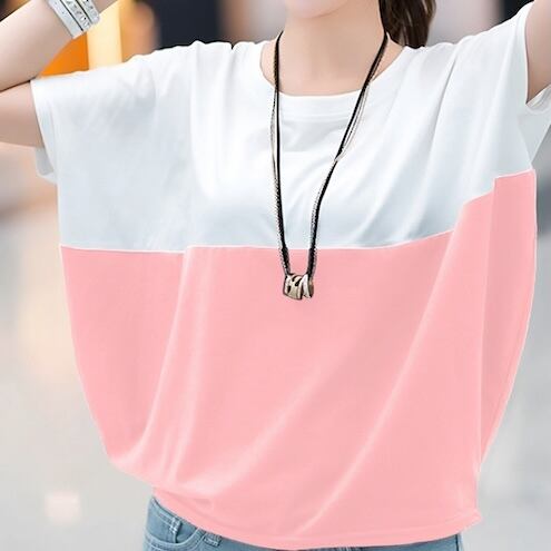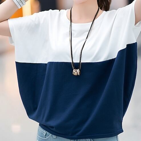 【送料無料】 レディース トップス カットソー クルーネック ゆったり カラー切り替え カラーブロック シンプル カジュアル きれいめ 大人かわいい 体型カバー 二の腕カバー スタイルアップ こなれ感 半袖 ネイビー ピンク グレー 20代 30代 40代 通勤 通学 オフィス お出掛け 女子会 お呼ばれ 春夏