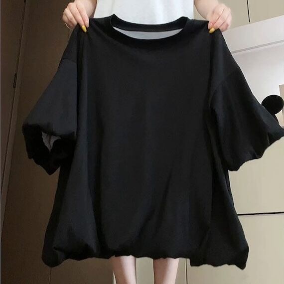 【送料無料】 レディース トップス カットソー クルーネック ふんわり袖 バルーンスリーブ ゆったり キュート シンプル カジュアル きれいめ 大人かわいい 体型カバー 二の腕カバー スタイルアップ 半袖 半端袖 グレー ブラック 20代 30代 40代 通勤 通学 オフィス お出掛け 女子会 お呼ばれ 春夏
