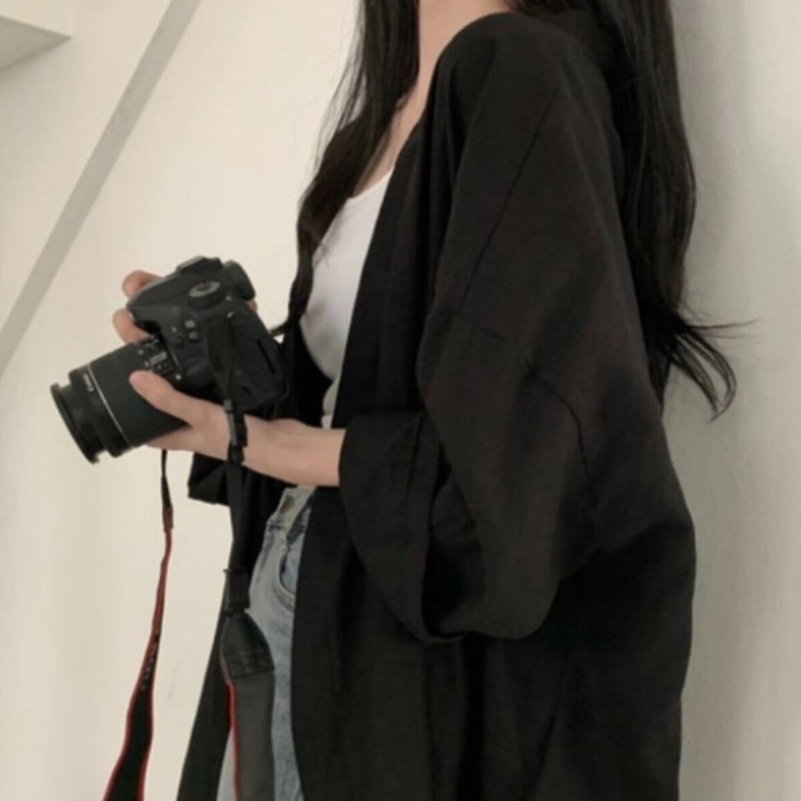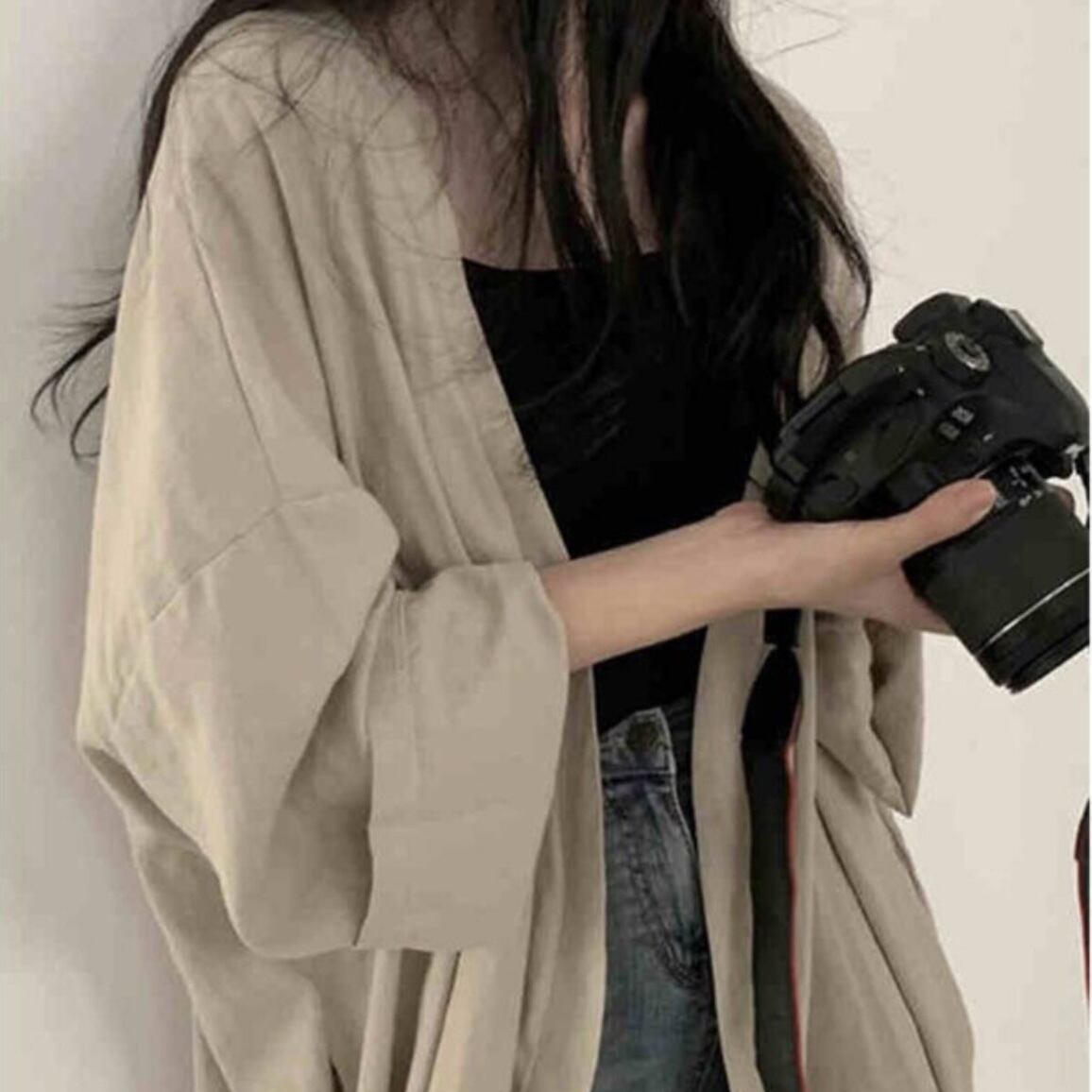 【送料無料】 レディース アウター 防寒 羽織り ジャケット クルーネック シンプル カジュアル きれいめ 大人かわいい 体型カバー 二の腕カバー スタイルアップ こなれ感 抜け感 キュート 長袖 ゆったり 透け感 シアー カーキ ブラック 20代 30代 40代 通勤 通学 オフィス お出掛け 女子会 お呼ばれ 春夏