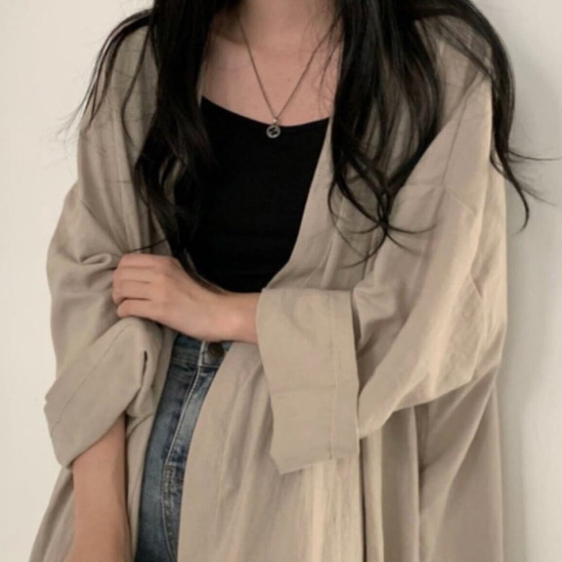 ゆったりサイズのロング丈でニュアンスのあるコーデに