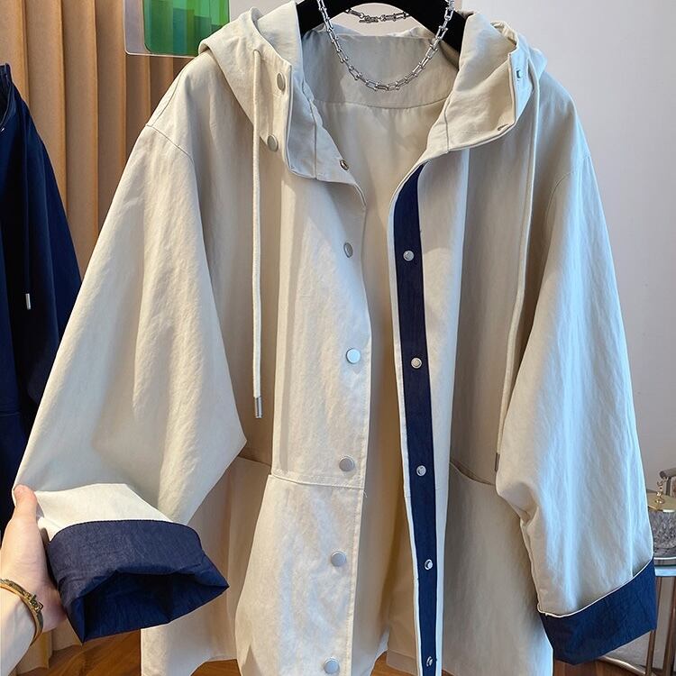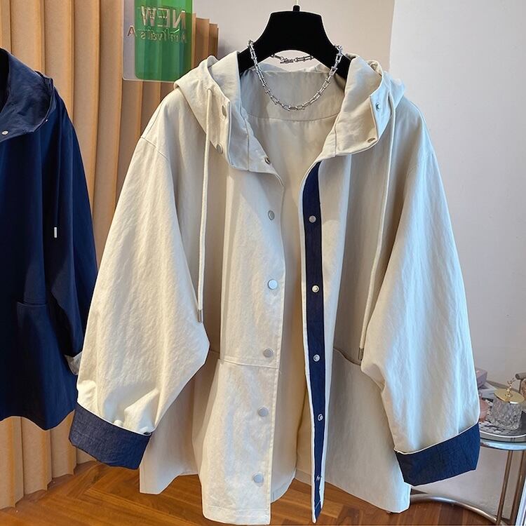 【送料無料】 レディース アウター 防寒 羽織り ジャケット パーカー クルーネック シンプル カジュアル きれいめ 大人かわいい 体型カバー 二の腕カバー スタイルアップ こなれ感 抜け感 キュート モノトーン 長袖 カラー切り替え カラーブロック アイボリー レッド ブルー 20代 30代 40代 通勤 通学 オフィス お出掛け 女子会 お呼ばれ 春夏