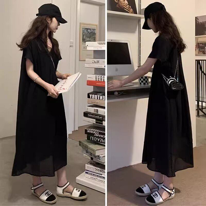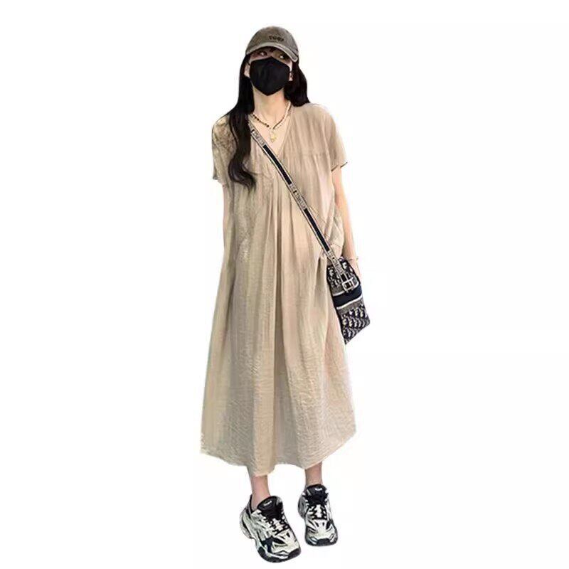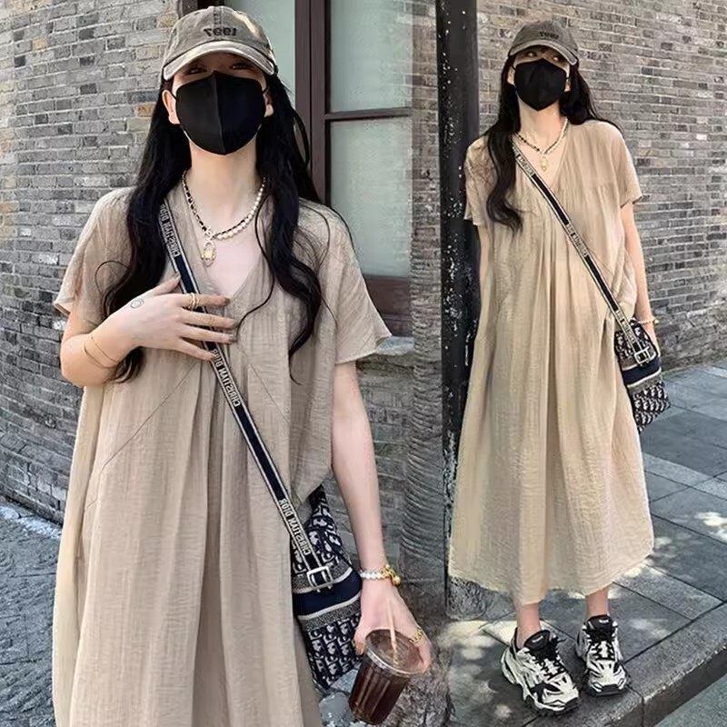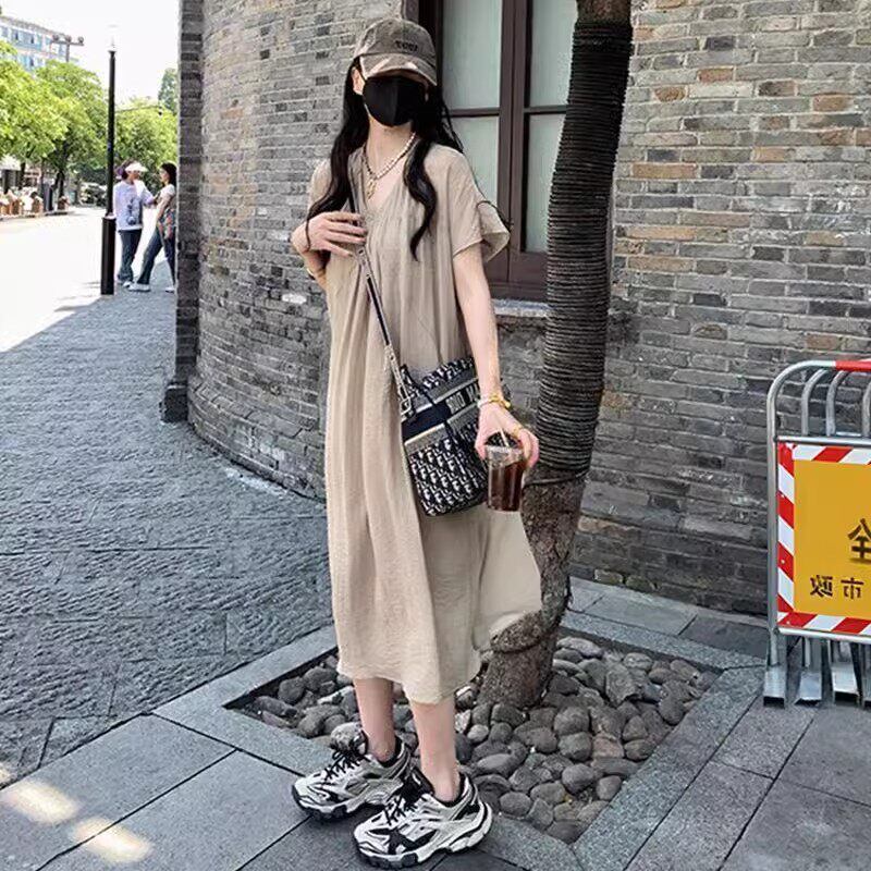 【送料無料】 レディース ワンピース Aライン Vネック ミドル丈 ミディアム丈 ミモレ丈 ロング丈 ナチュラル ゆったり シンプル きれいめ 大人かわいい キュート レトロ こなれ感 体型カバー 二の腕カバー スタイルアップ 半袖 ベージュ ブラック 20代 30代 40代 通勤 通学 オフィス お出掛け 女子会 お呼ばれ 春夏