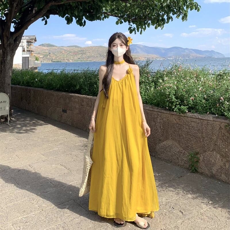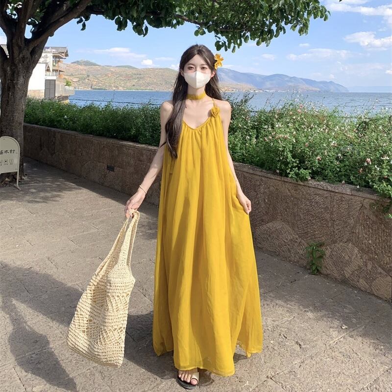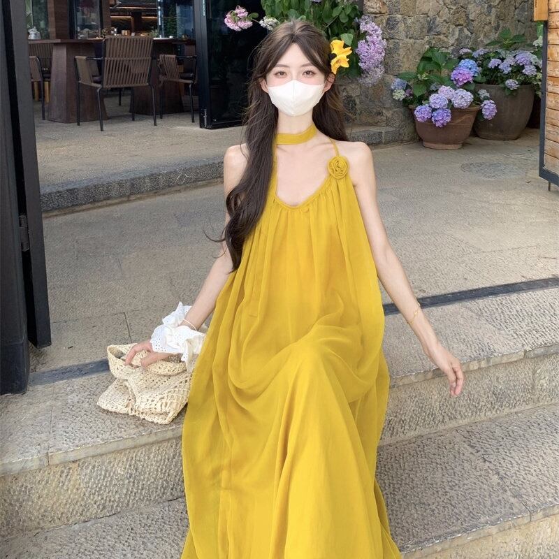 【送料無料】 レディース ワンピース Aライン クルーネック ロング丈 マキシ丈 シンプル きれいめ 大人かわいい キュート レトロ こなれ感 体型カバー 二の腕カバー スタイルアップ ノースリーブ ナチュラル ゆったり イエロー ブルー 20代 30代 40代 通勤 通学 オフィス お出掛け 女子会 お呼ばれ 春夏