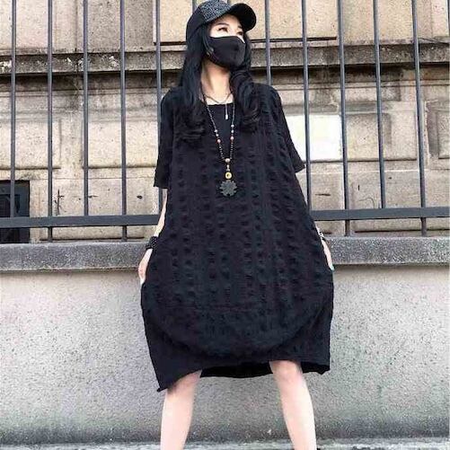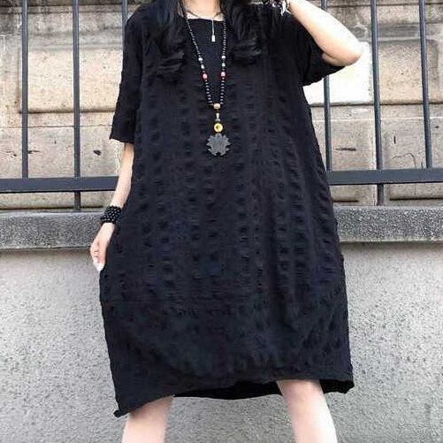 【送料無料】 レディース ワンピース Aライン クルーネック ミドル丈 ミディアム丈 ミモレ丈 シンプル きれいめ 大人かわいい キュート レトロ こなれ感 体型カバー 二の腕カバー スタイルアップ 半袖 半端袖 5分袖 ブラック 20代 30代 40代 通勤 通学 オフィス お出掛け 女子会 お呼ばれ 春夏