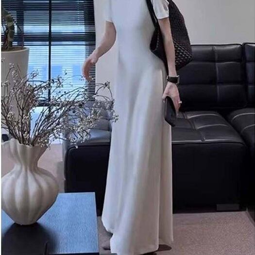【送料無料】 レディース ワンピース Aライン クルーネック ロング丈 マキシ丈 シンプル きれいめ 大人かわいい キュート レトロ こなれ感 体型カバー 二の腕カバー スタイルアップ 半袖 ホワイト ブラック 20代 30代 40代 通勤 通学 オフィス お出掛け 女子会 お呼ばれ 春夏
