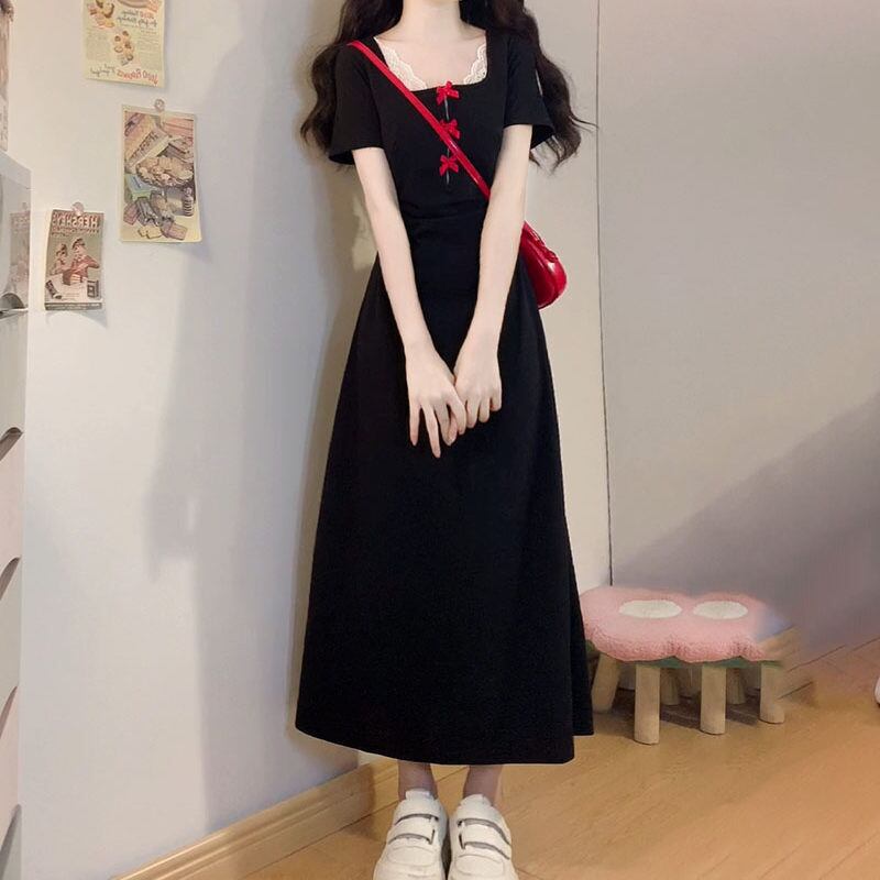 【送料無料】 レディース ワンピース Aライン クルーネック ドッキング 素材組み合わせ カラー切り替え カラーブロック ギャザー ミドル丈 ミディアム丈 ミモレ丈 ロング丈 マキシ丈 シンプル きれいめ 大人かわいい キュート レトロ こなれ感 体型カバー 二の腕カバー スタイルアップ 半袖