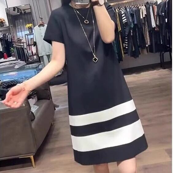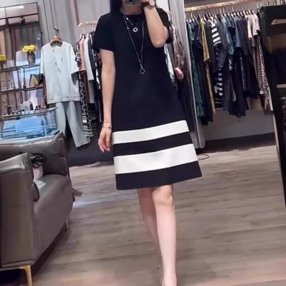 【送料無料】 レディース ワンピース Aライン クルーネック カラー切り替え カラーブロック ドッキング 素材組み合わせ ミニ丈 ショート丈 ミドル丈 ミディアム丈 モノトーン シンプル きれいめ 大人かわいい キュート レトロ こなれ感 体型カバー 二の腕カバー スタイルアップ 半袖 ブラック 20代 30代 40代 通勤 通学 オフィス お出掛け 女子会 お呼ばれ 春夏