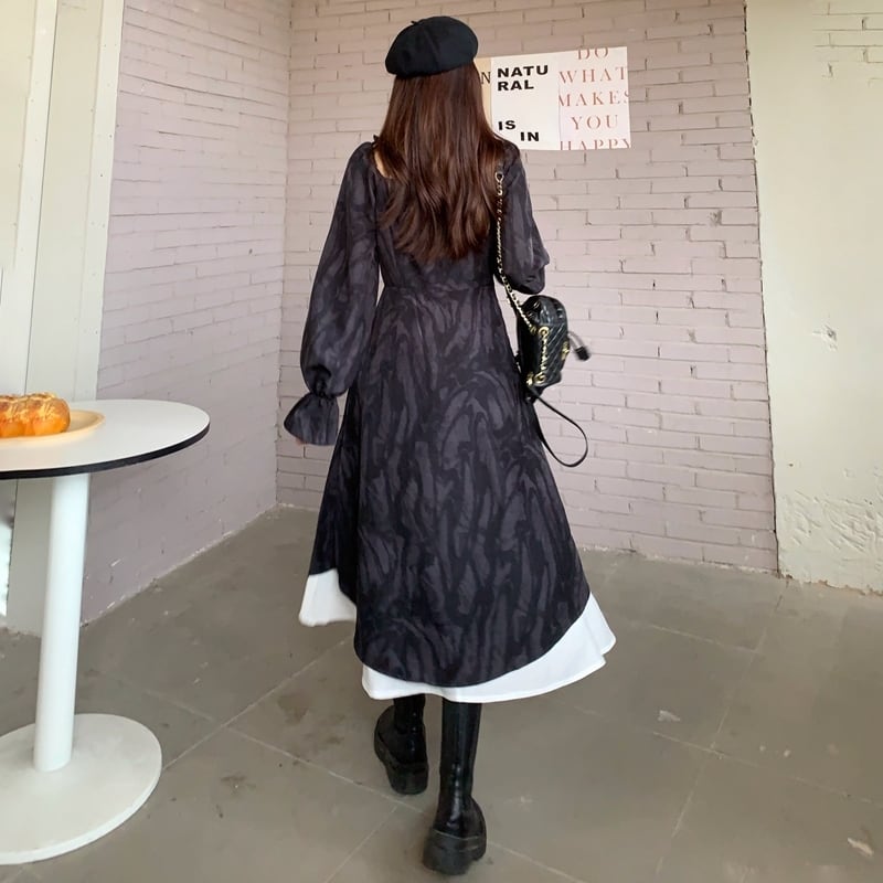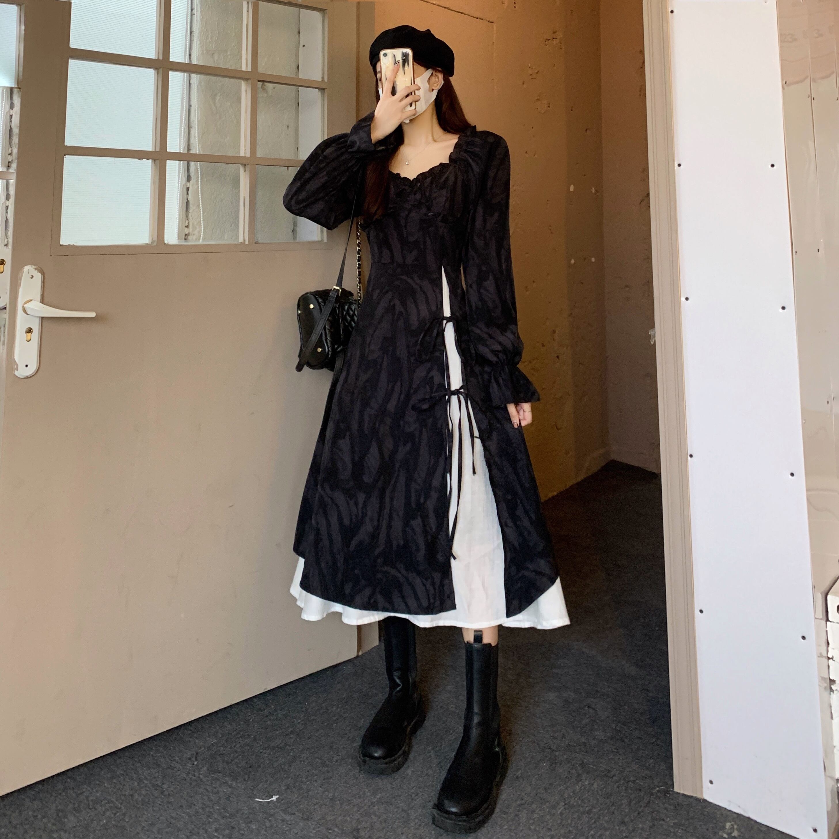 【送料無料】 フレンチドレス ロング丈 スクエアネック 長袖 クラシカル 高級感 大人ドレス お呼ばれ 大きいサイズ