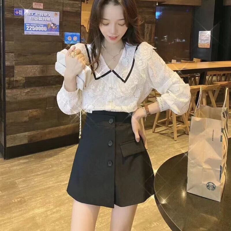【送料無料】 トップス ブラウス モノトーン レース シアー キュート スウィート レトロ 長袖 白 黒 ホワイト ブラック 20代 30代 通勤 通学 お出かけ 春夏