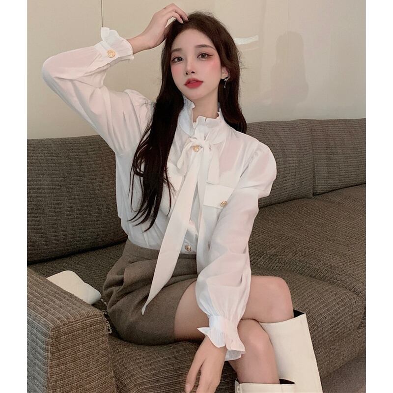 【送料無料】 トップス ブラウスリボン スタンドカラー 立ち襟 リボン 上品 大人かわいい エレガント フリル レトロ 20代 30代 40代 通勤 通学 オフィス お出かけ 春夏