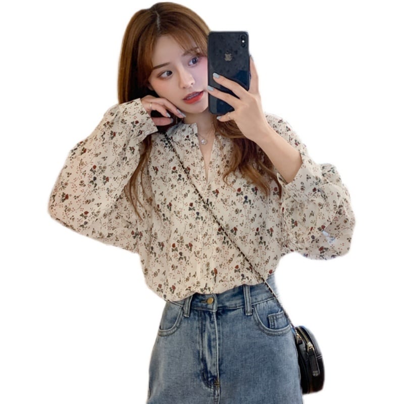 清楚なフラワープリントのブラウス