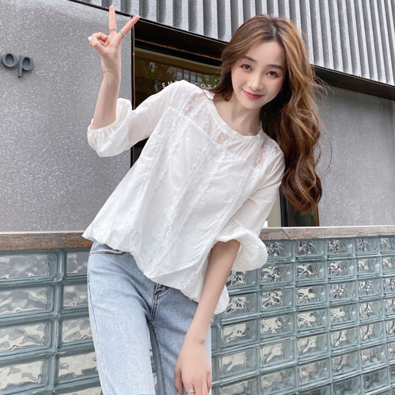 【送料無料】 トップス ブラウス シアー レース 透け感 フェミニン 上品 カジュアル キレイめ 大人可愛い 白 ホワイト 半端袖 20代 30代 40代 通勤 通学 オフィス お出かけ 春夏