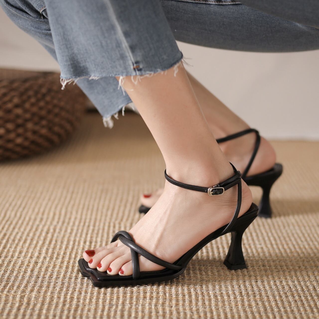 【送料無料】 アンクルストラップ サンダル ナローストラップ スクエアトゥ ヒール ハイヒール ピンヒール レディース トレンド おしゃれ レディ エレガント きれいめ かわいい シンプル フェミニン 春 夏 20代 30代 40代 黒 茶色 ブラック ブラウン