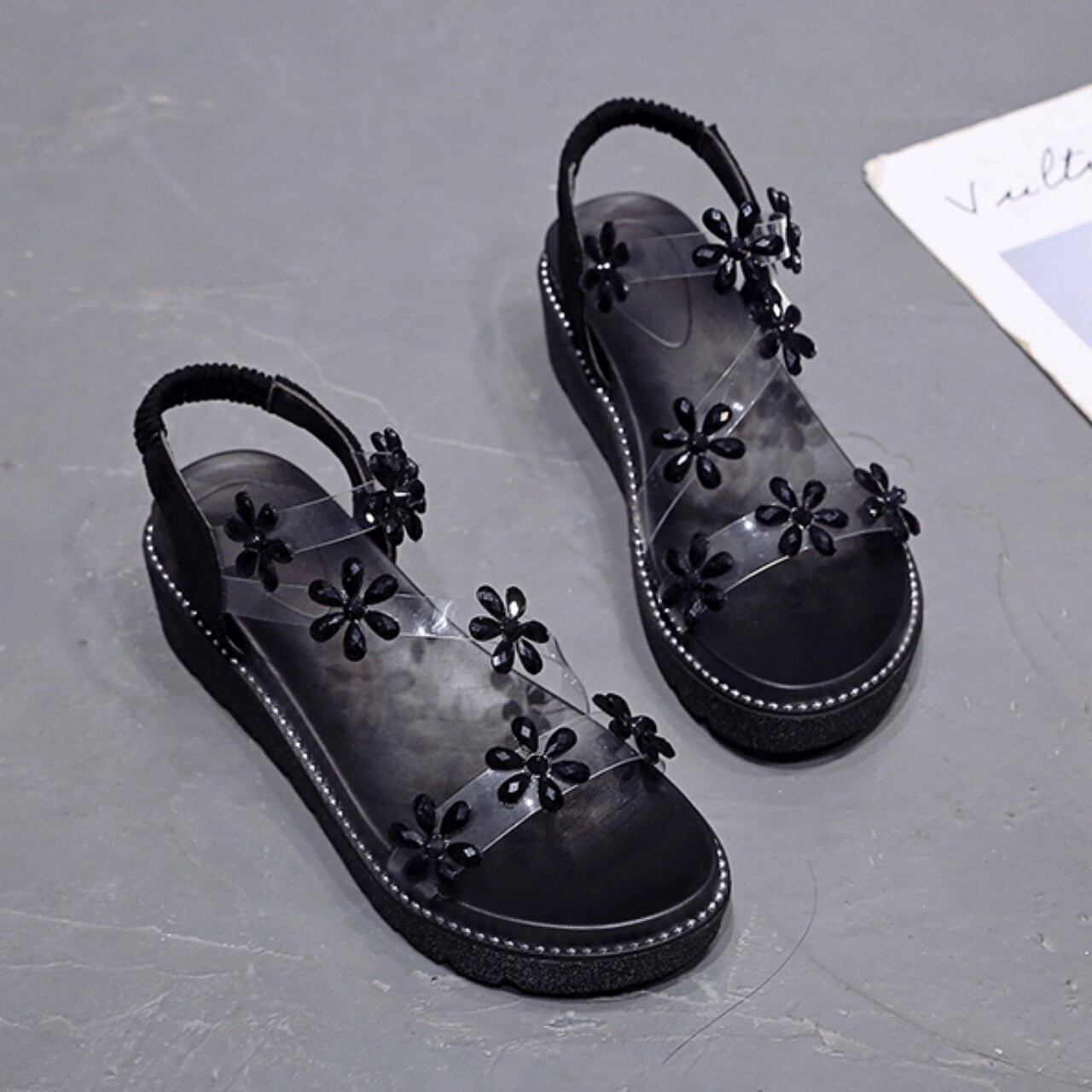 【送料無料】 フラワー ビジュー クリアサンダル 厚底 プラットフォーム ウェッジソール ストラップサンダル 花 レディース 歩きやすい 疲れない 楽ちん 痛くない トレンド かわいい おしゃれ 大人可愛い フェミニン ガーリー レディ スポーティ 春 夏 20代 30代 40代 ブラック ベージュ 黒 レディース サマー サンダル シューズ 靴 透明 透け感 ヒール ラインストーン きらきら キラキラ 大きいサイズ