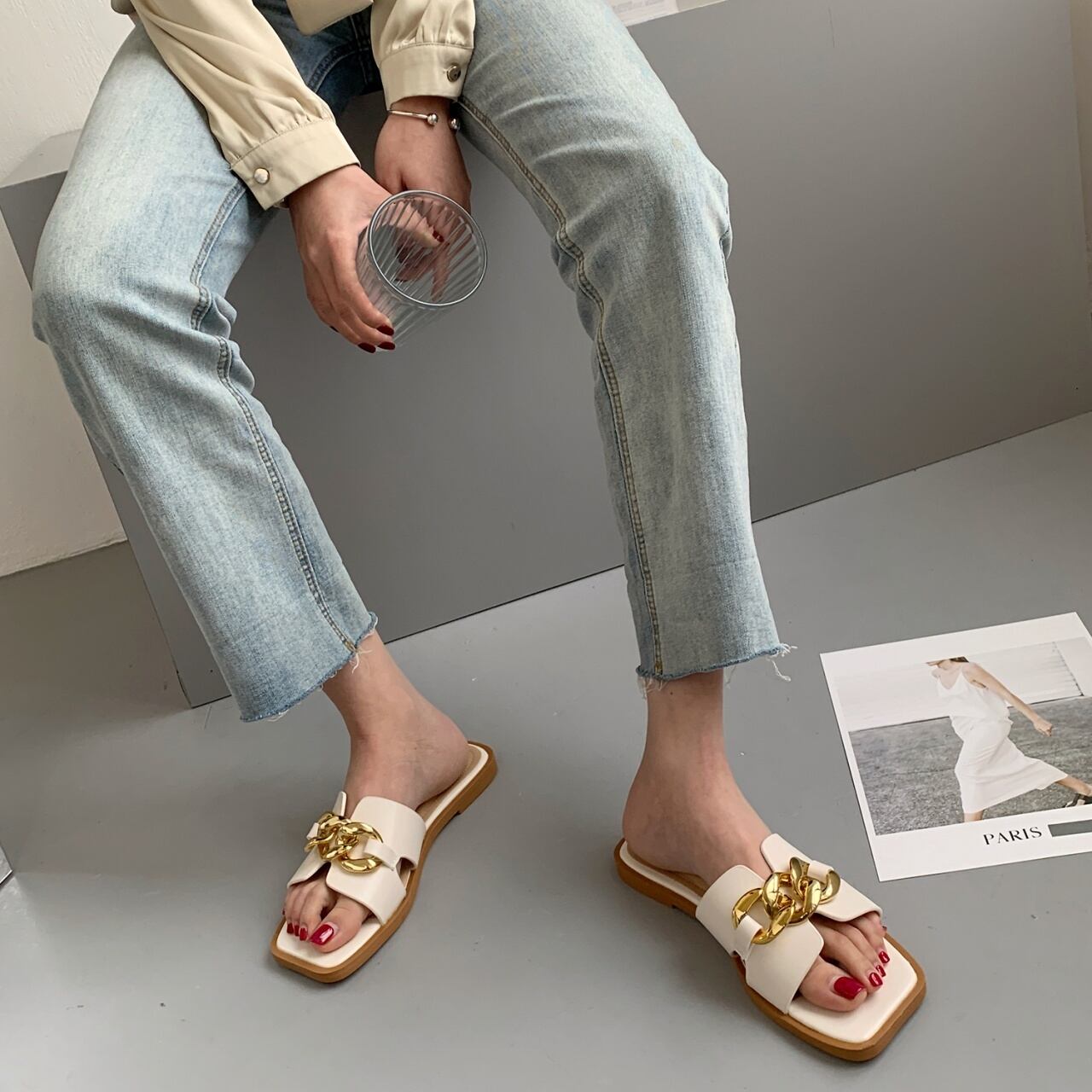 【送料無料】 スクエアトゥ フラットサンダル スリッパ ミュール ローヒール ビーチサンダル ぺたんこ レディース 春 夏 かわいい おしゃれ エレガント カジュアル 歩きやすい 疲れない 痛くない 20代 30代 40代 ブラック オフホワイト 黒 白
