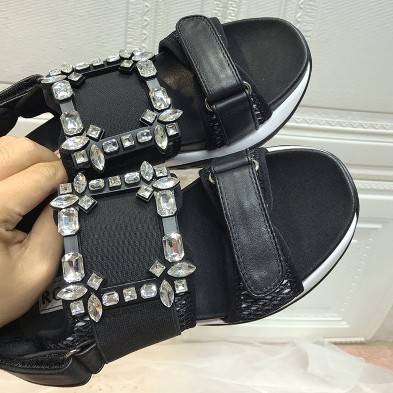 【送料無料】 ビジュー スポーツサンダル 厚底 キラキラ ストラップ 疲れない 痛くない 美脚 レディース シューズ 春 夏 20代 30代 40代 韓国 トレンド かわいい きれいめ エレガント カジュアル スポーティ おしゃれ ホワイト ブラック 白 黒