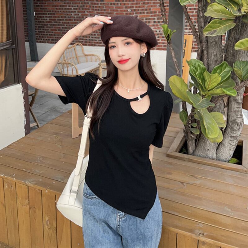 【送料無料】 トップス カットソー デザインT アシンメトリー シンプル カジュアル おしゃれ 半袖 黒 ボーダー ブラック 20代 30代 通勤 通学 オフィス お出掛け 春夏